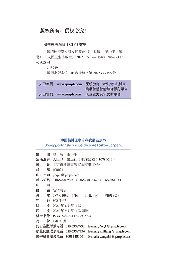 中国精神医学专科发展蓝皮书 赵敏 王小平 主编 系统总结了精神医学发展历程 介绍精神医学不同亚专科设置背景等 人民卫生出版社