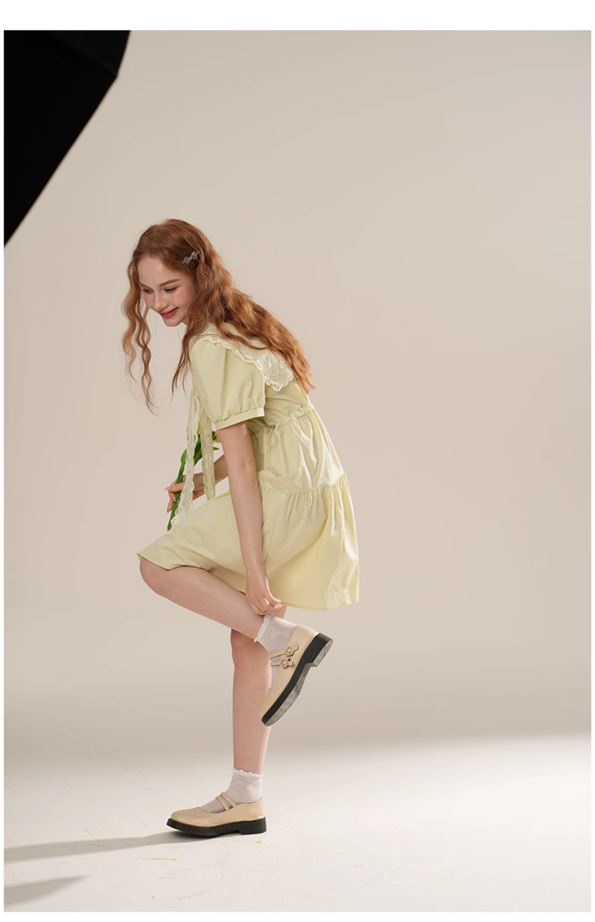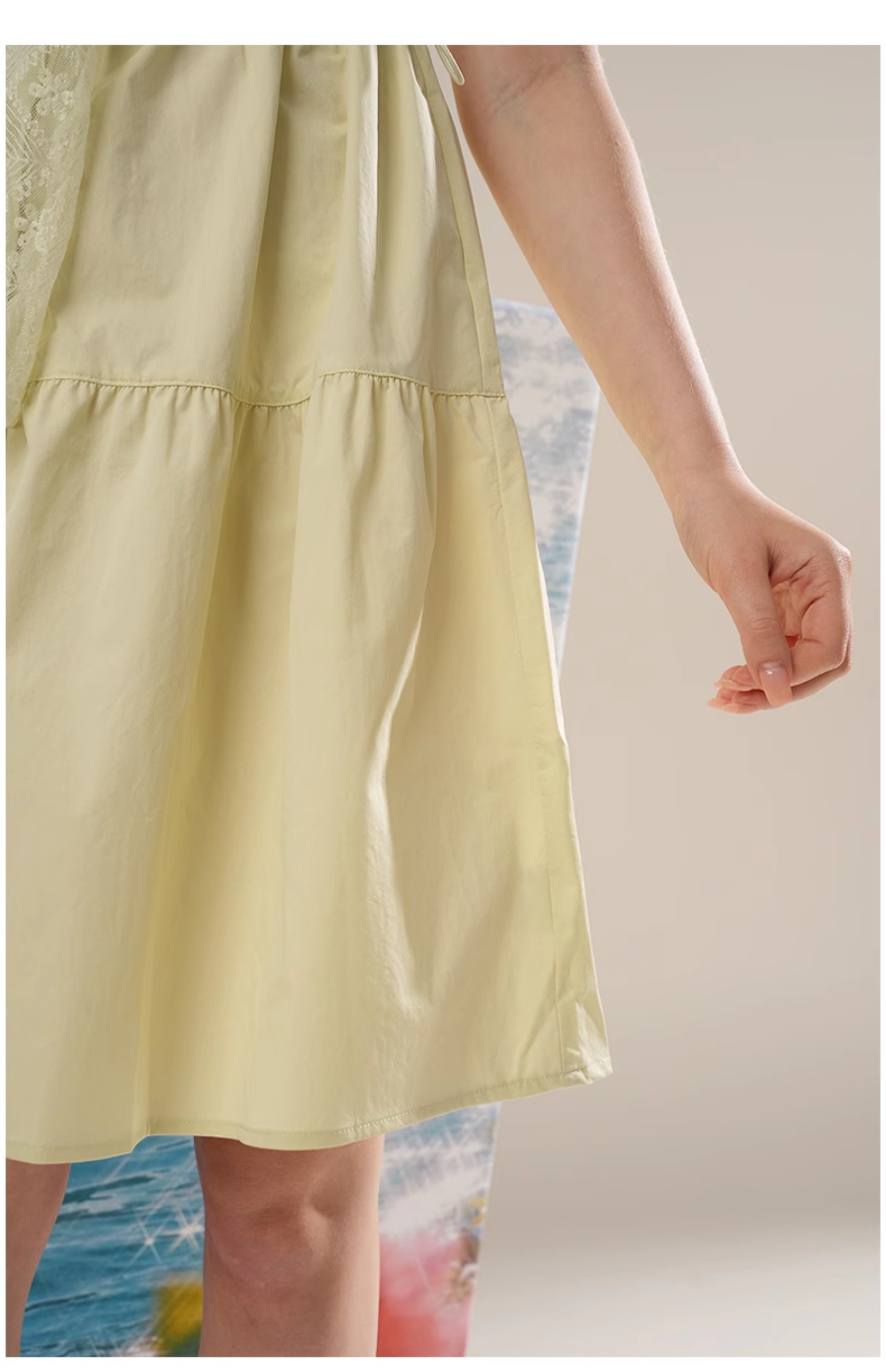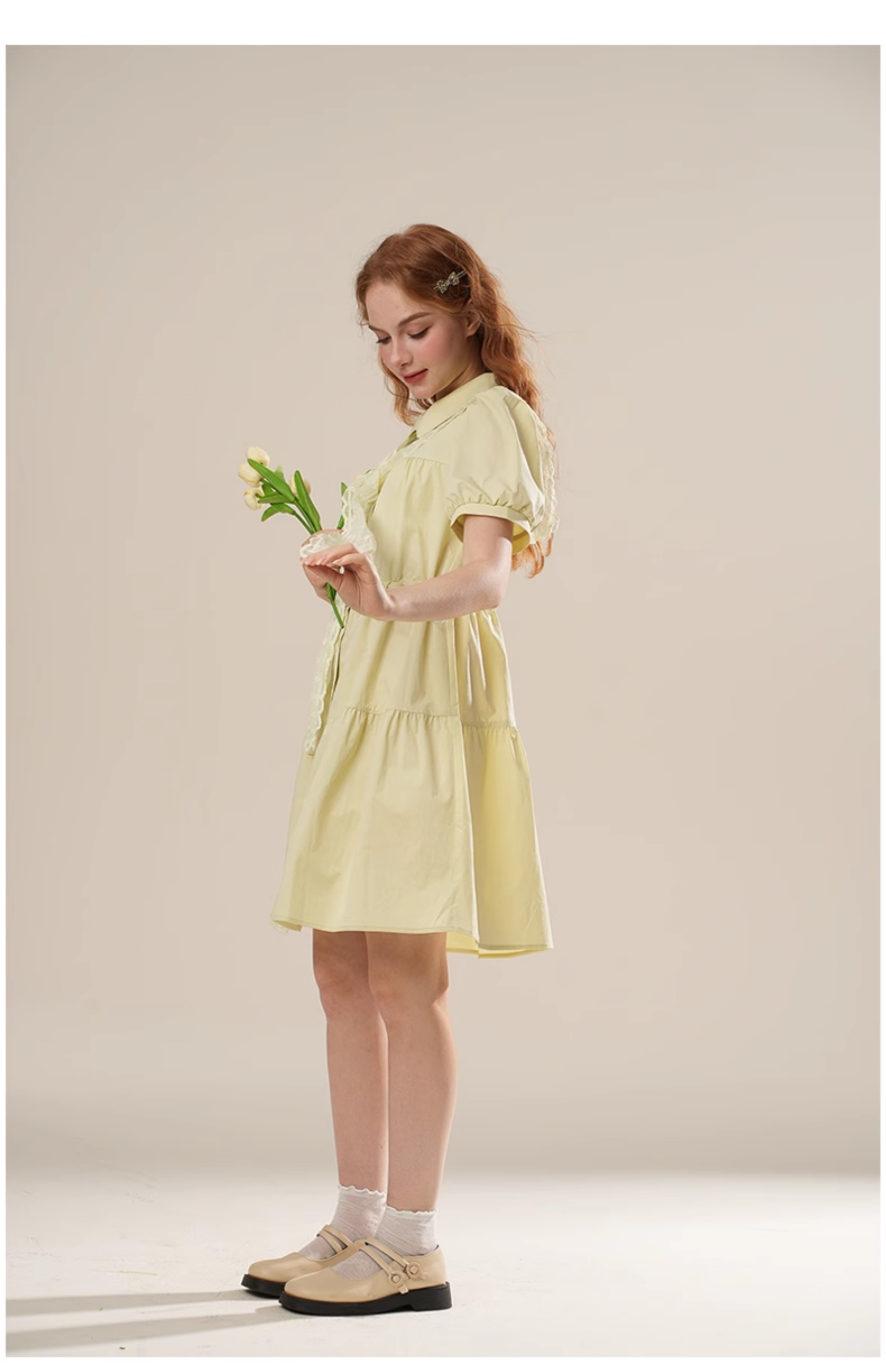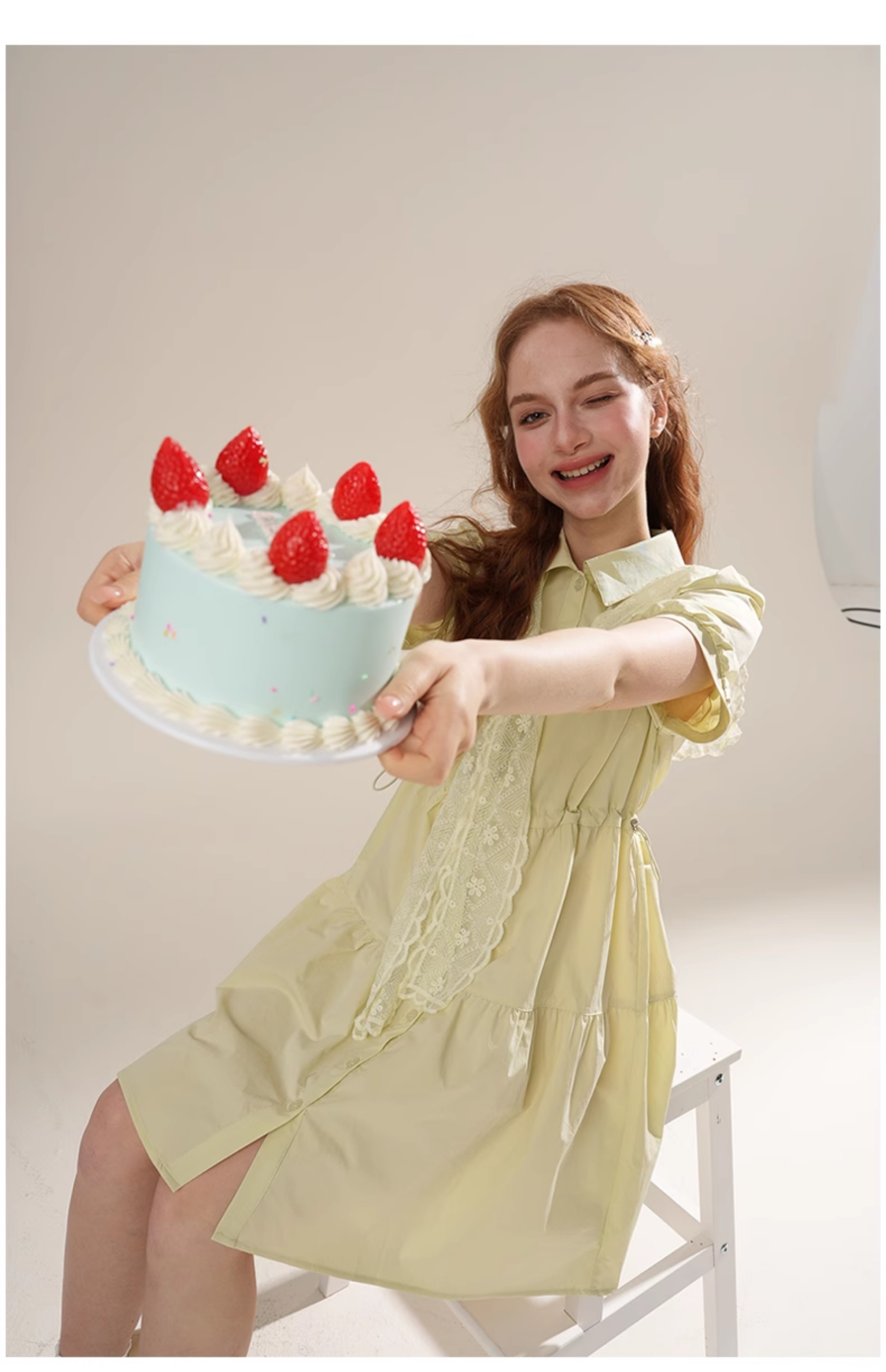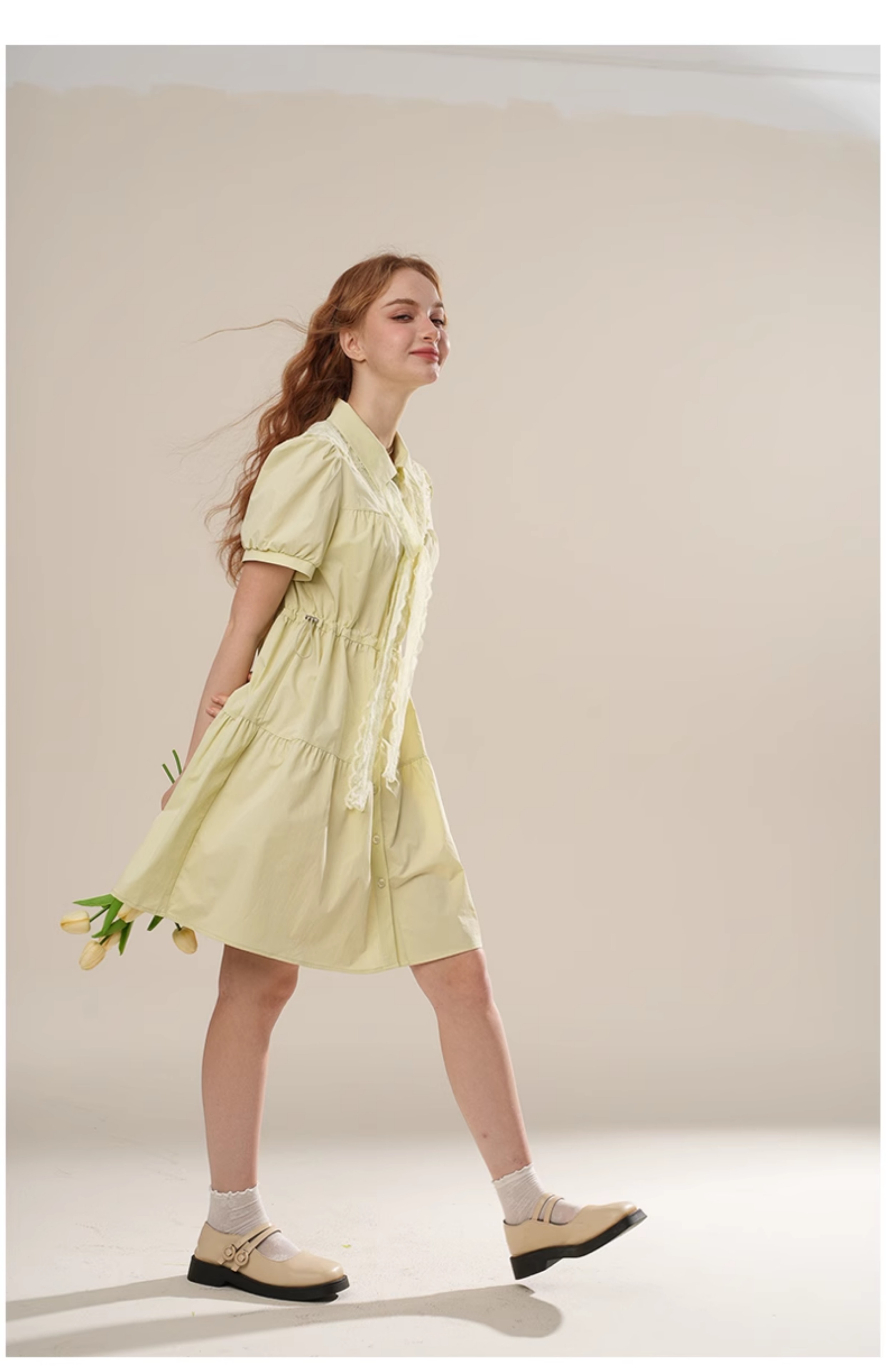 女装翻领配蕾丝披肩a型抽皱连衣裙-087Q5221007