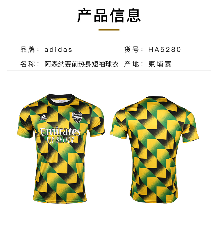 ADIDAS/阿迪达斯 AFC 22 PRESHI 阿森纳赛前热身足球短袖球衣HA5280