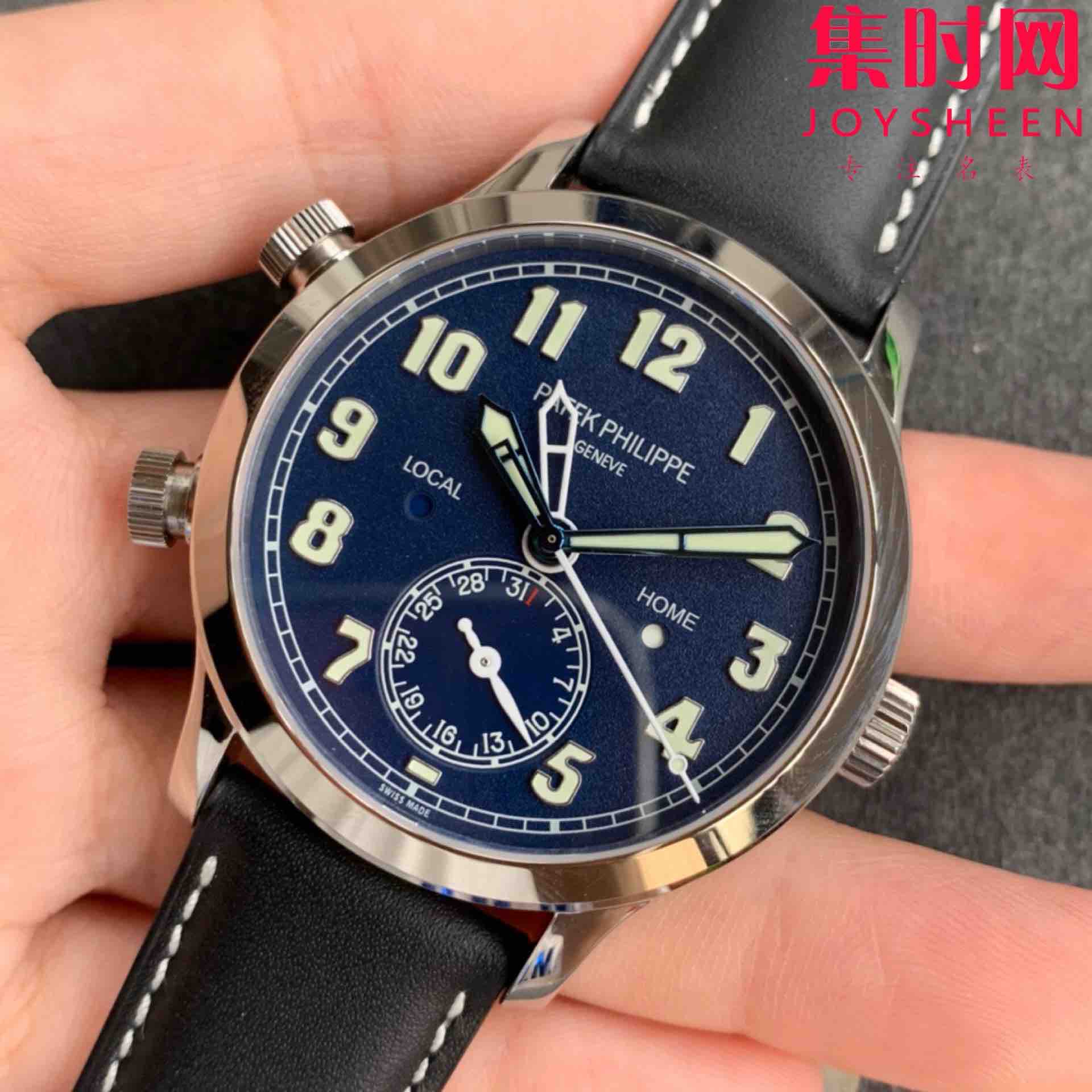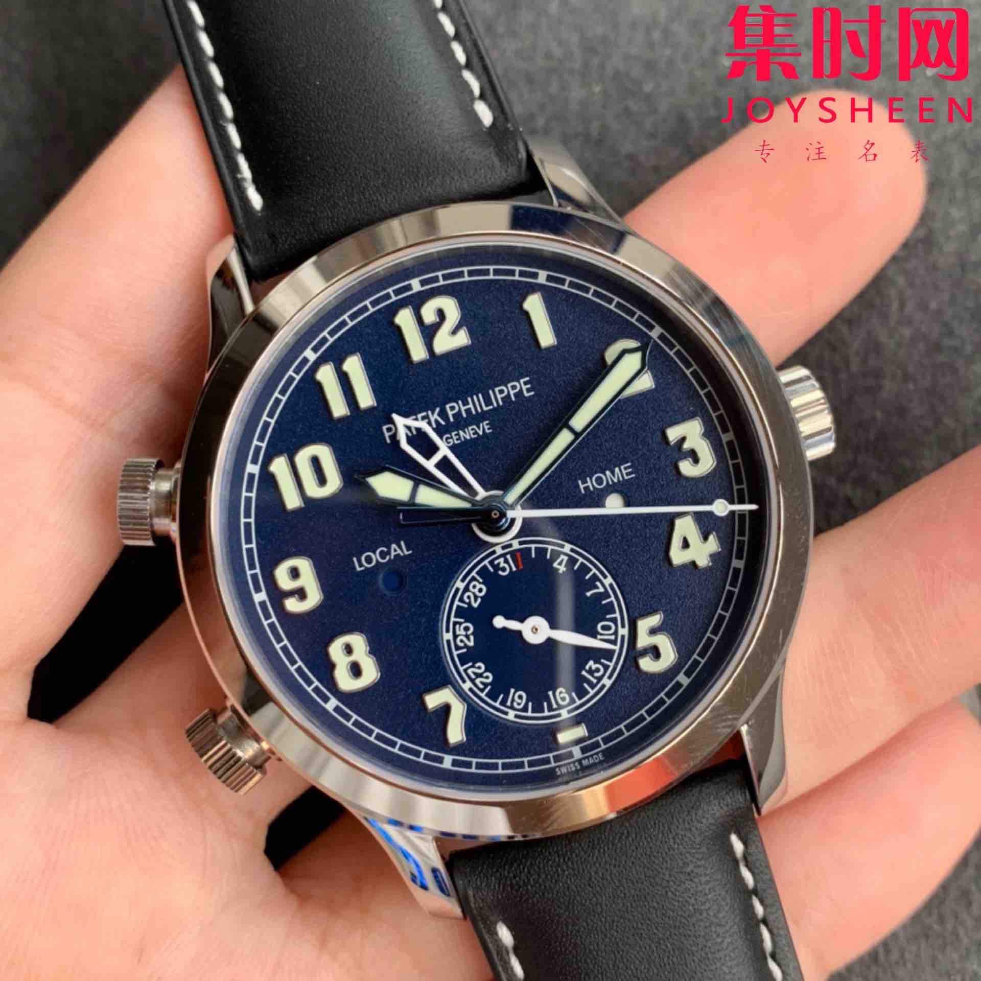 V2升级版 GR百达翡丽复杂功能时计5524系列 两地时区Calatrava飞行家旅行时间男士腕表 表径42mm