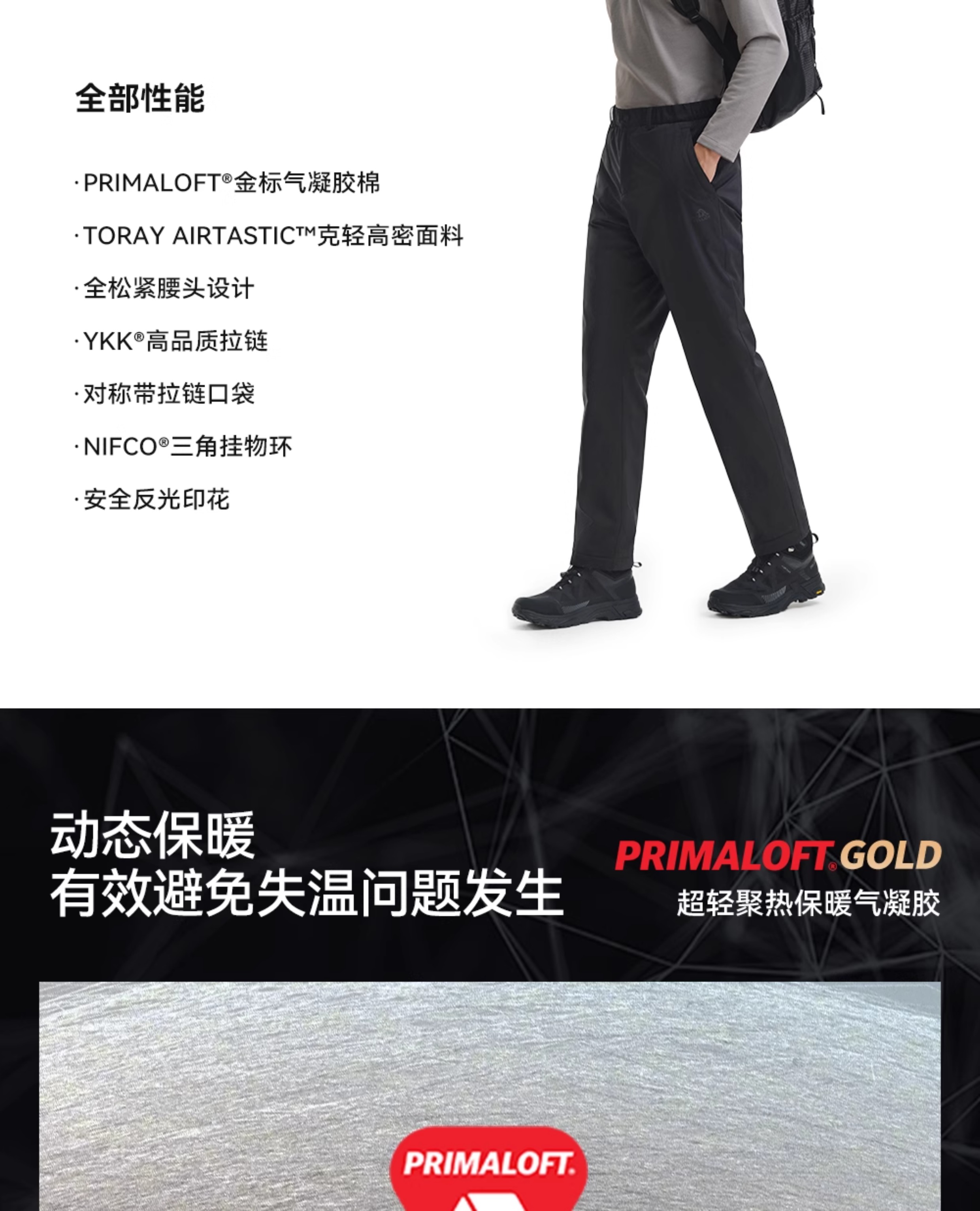 伯希和Primaloft保暖棉裤男户外金标P棉长裤防风登山裤轻量新款女