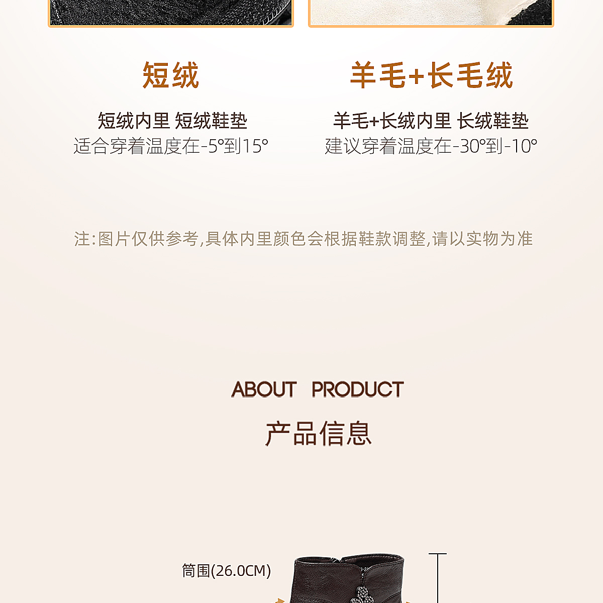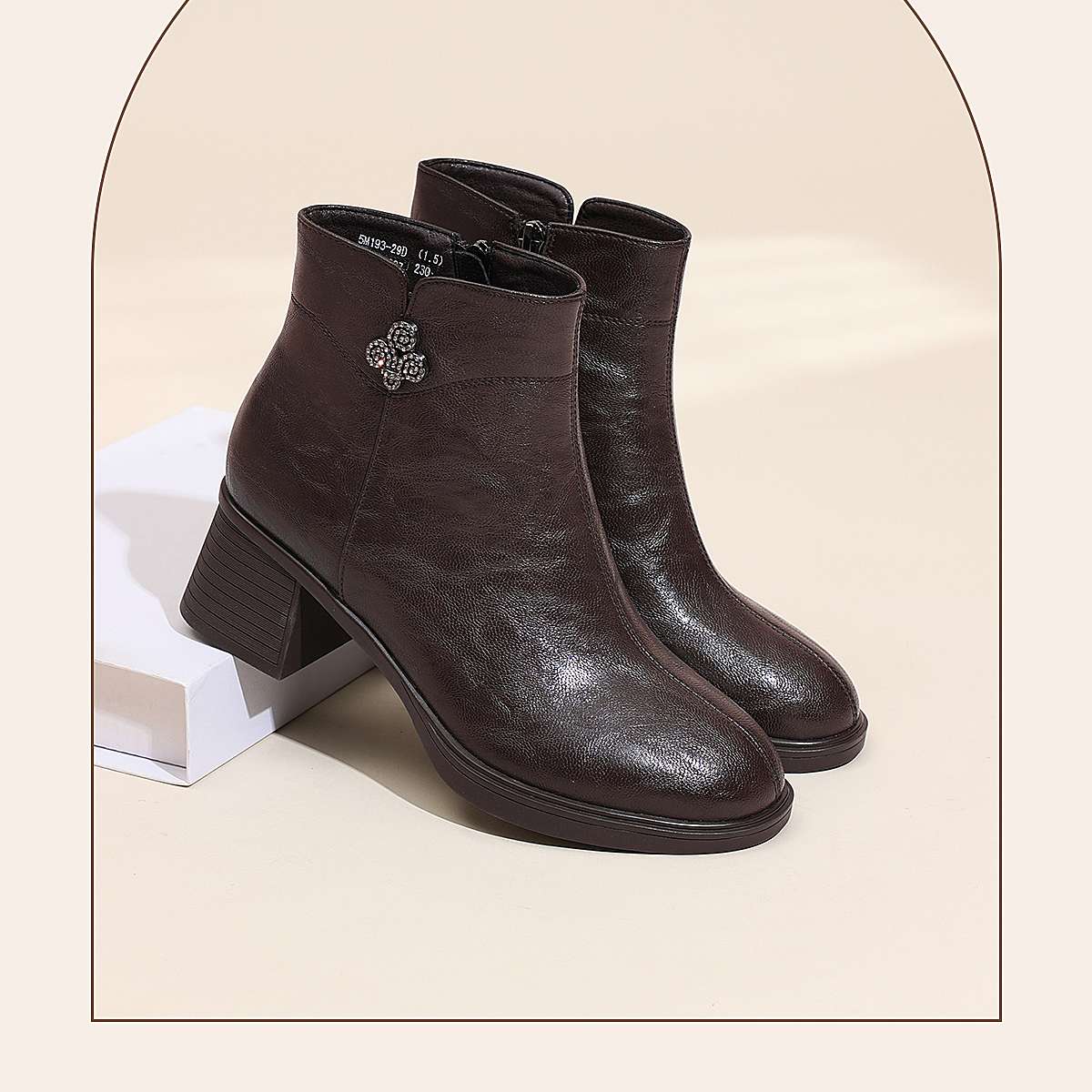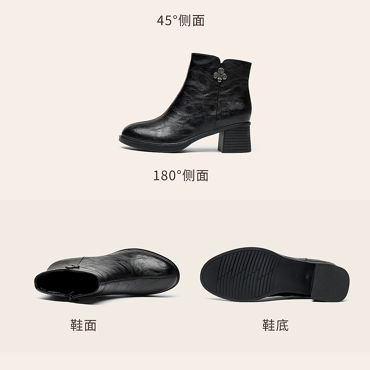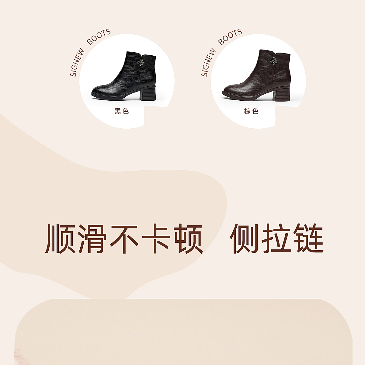 信诺羊毛妈妈棉鞋女百搭粗跟短靴中老年加绒保暖皮鞋2025冬季新款5M193-29TZY