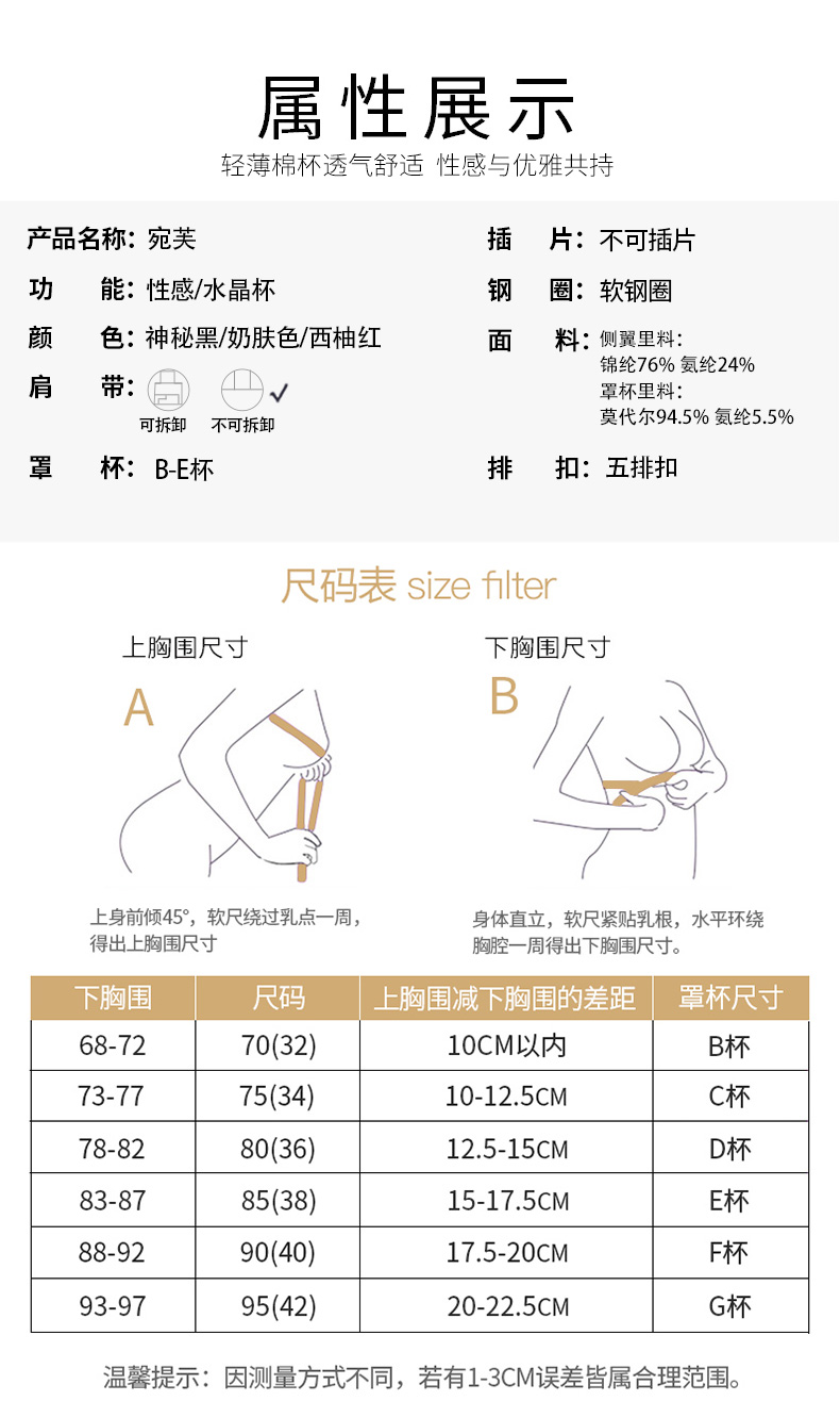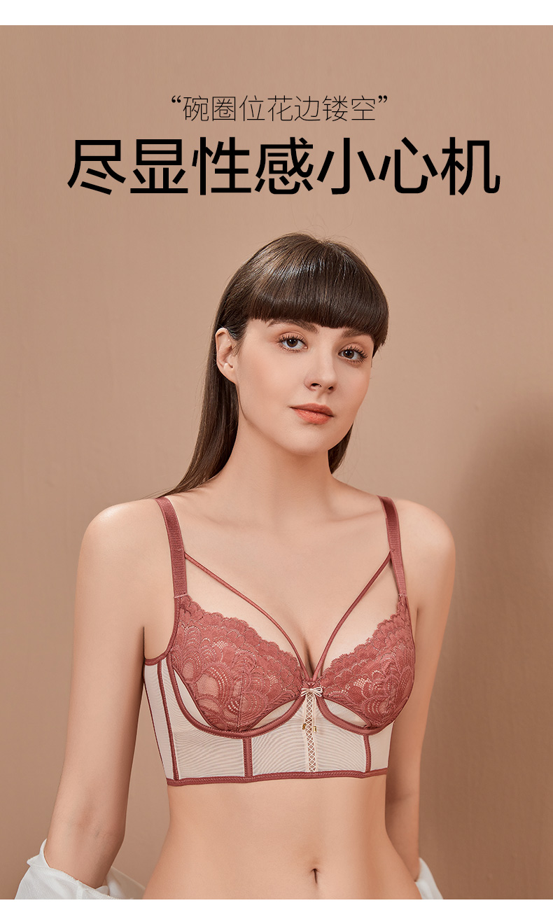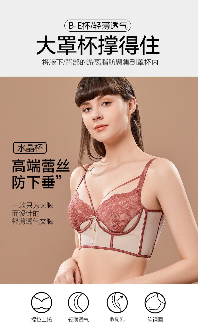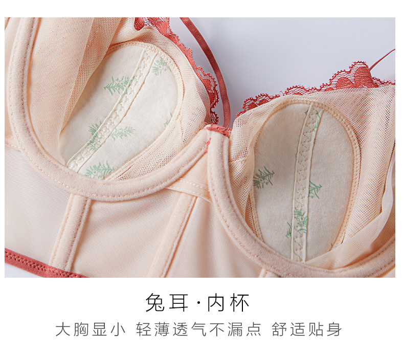 撞色设计时尚,性感兔耳朵水晶杯大胸显小,轻薄透气,宛芙调整型文胸
