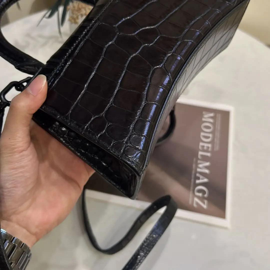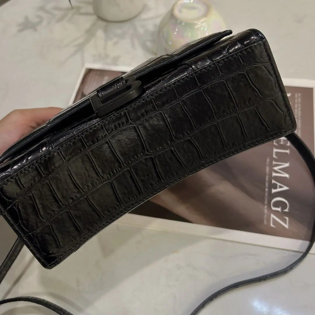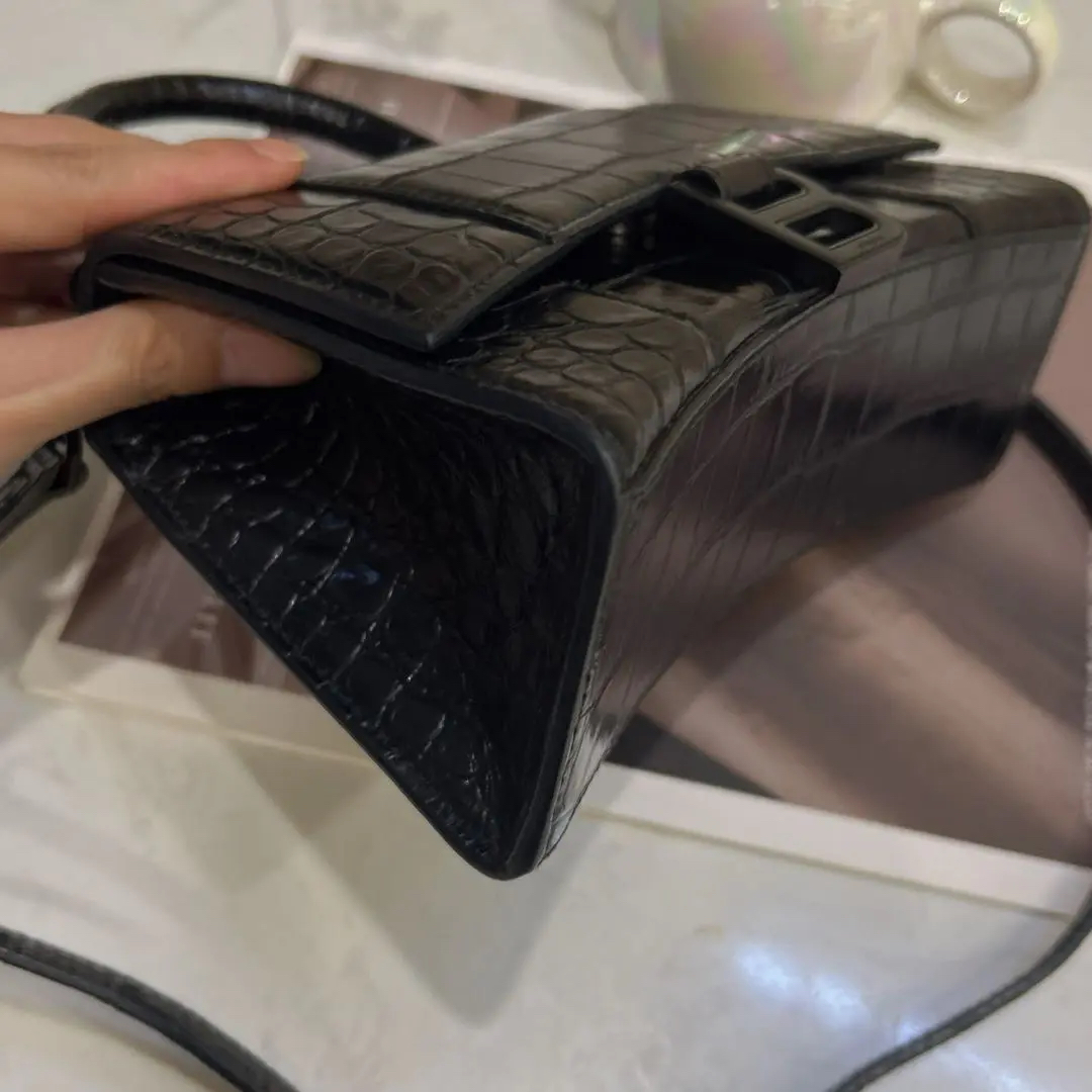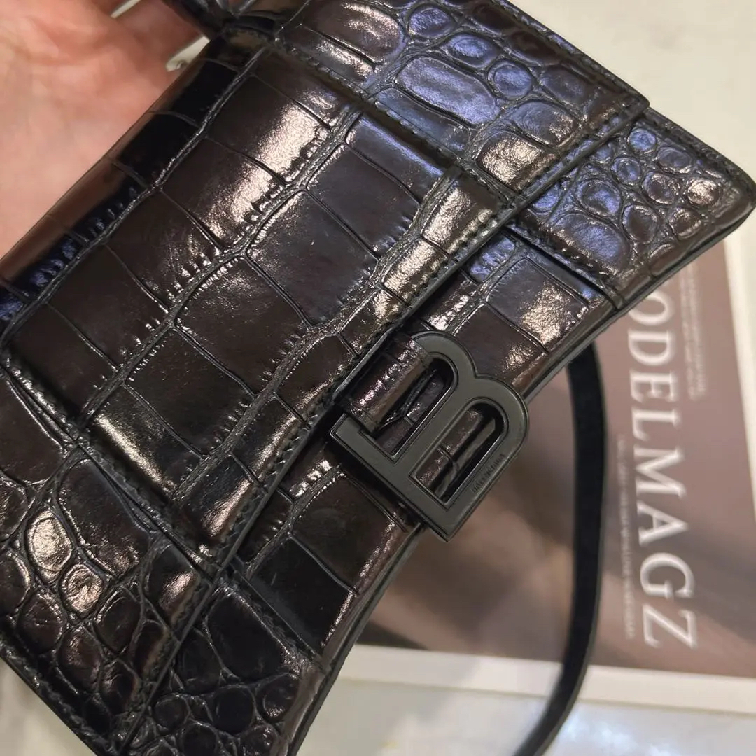 巴黎世家 xs号 soblack 鳄鱼压纹 牛皮 沙漏包
