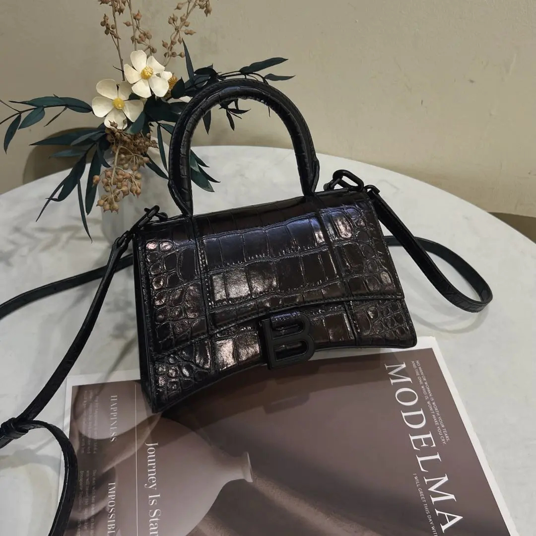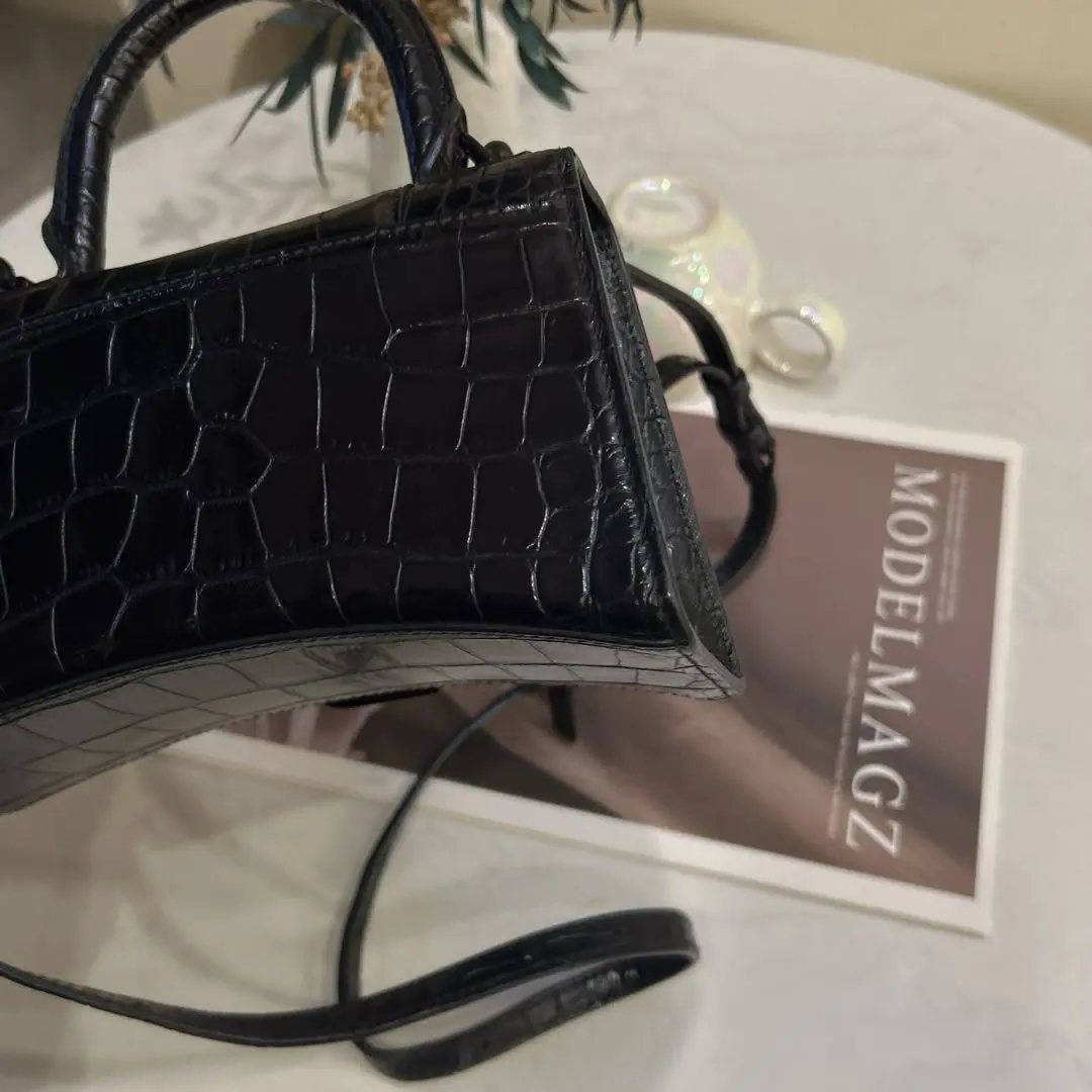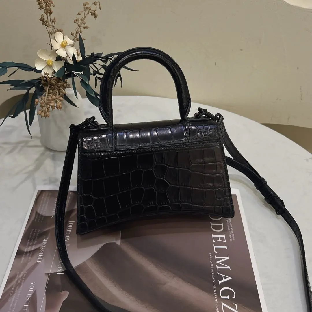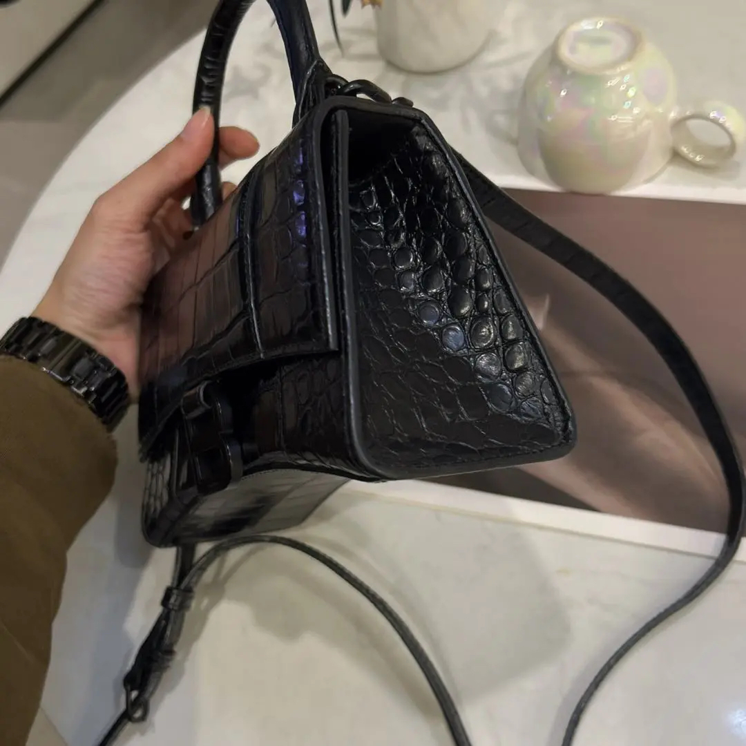 巴黎世家 xs号 soblack 鳄鱼压纹 牛皮 沙漏包