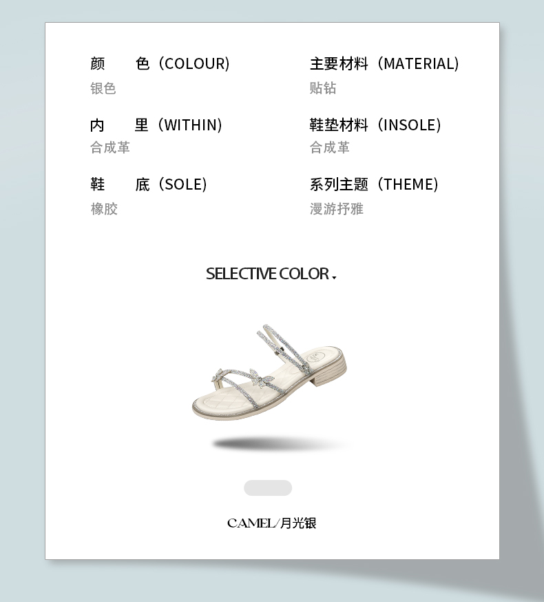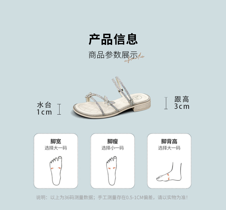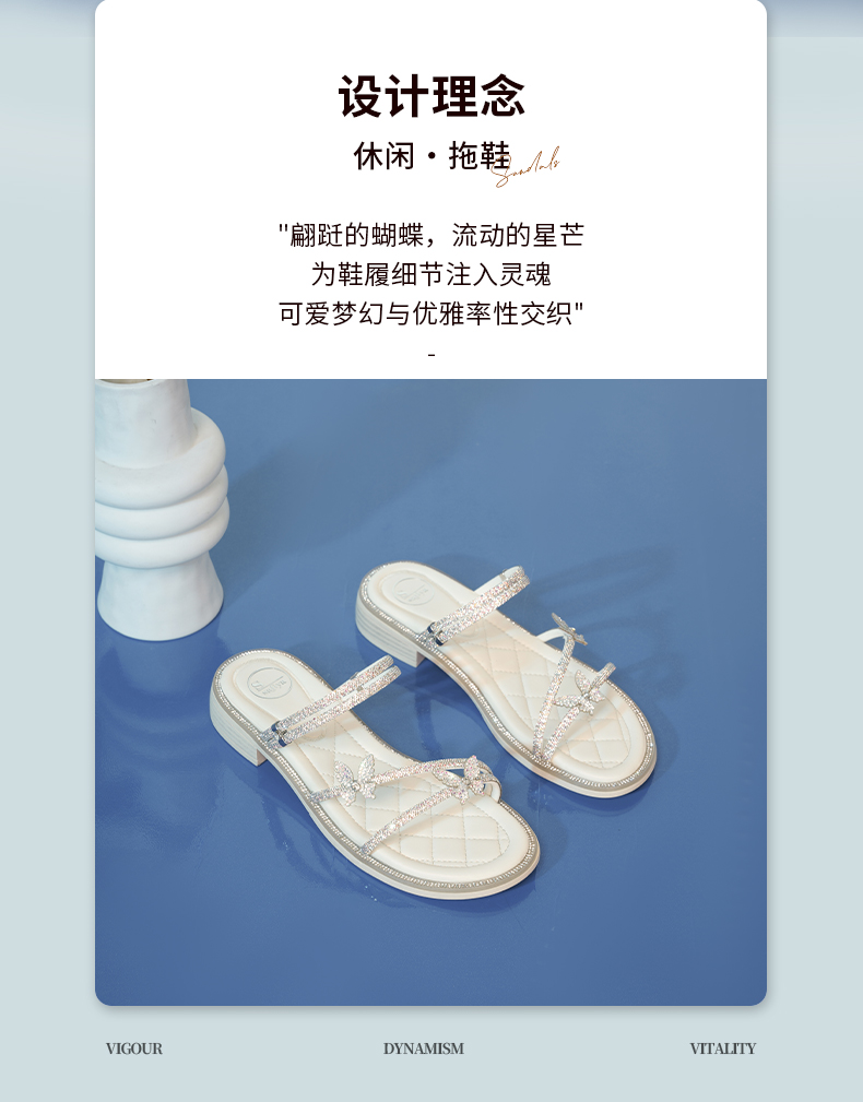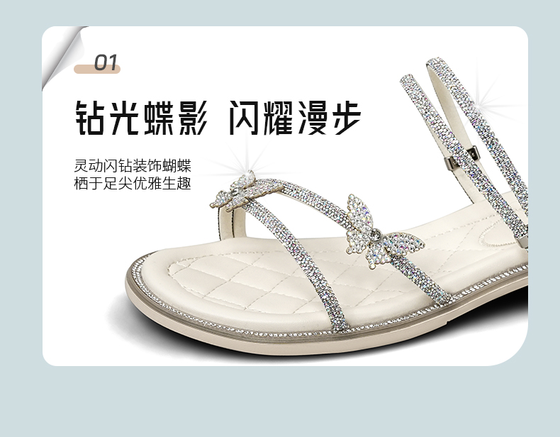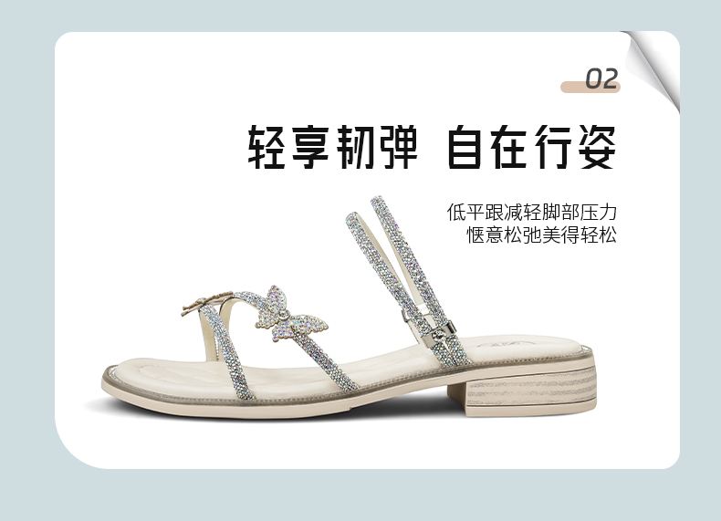 预售7天|Safiya/索菲娅2025仙女风闪钻蝴蝶一字带低跟两穿平底凉拖鞋 SFD2110410