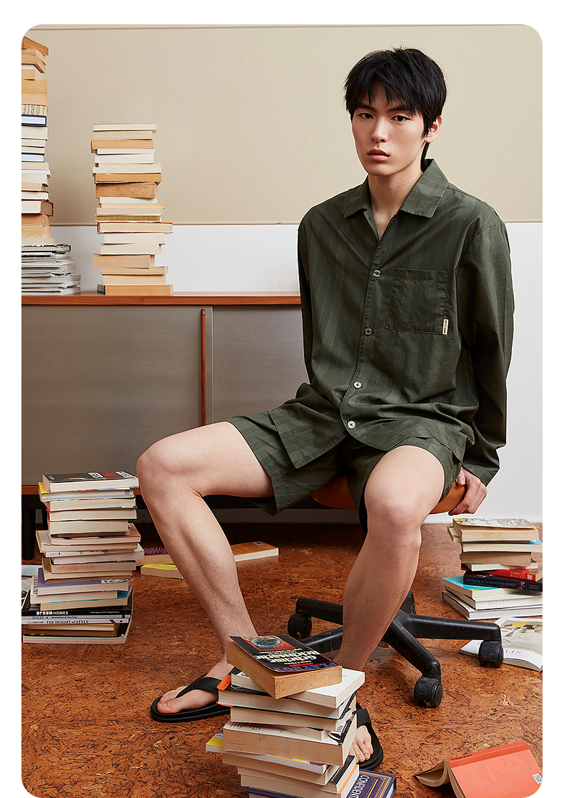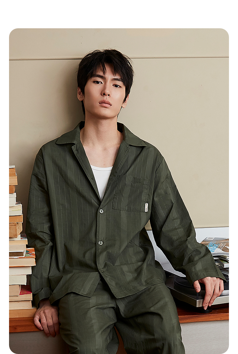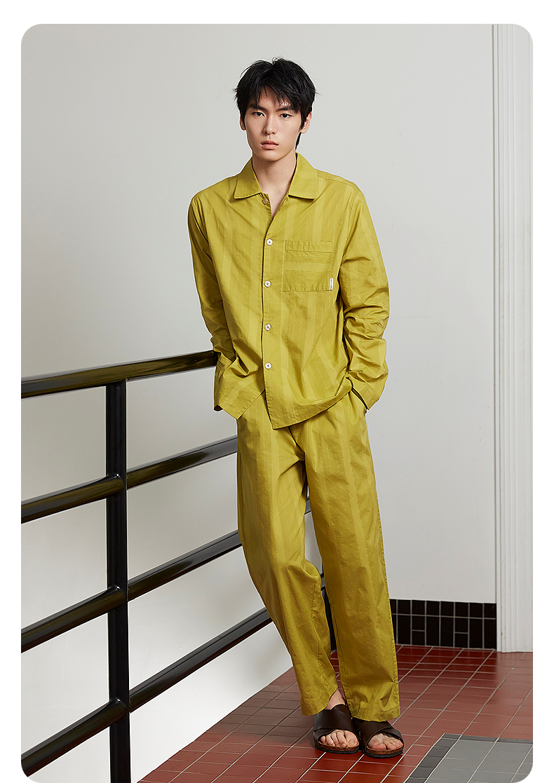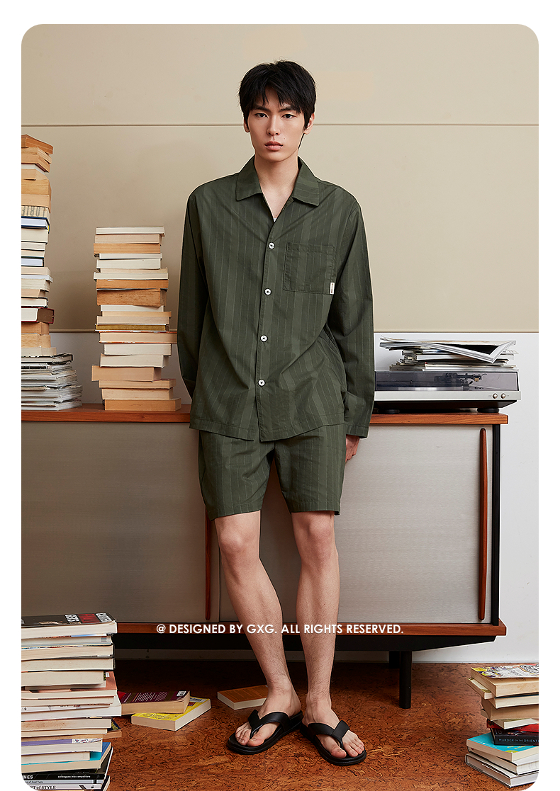 GXG男士家居服 条纹衬衫式可外穿家居服睡衣单上衣 25年春新品