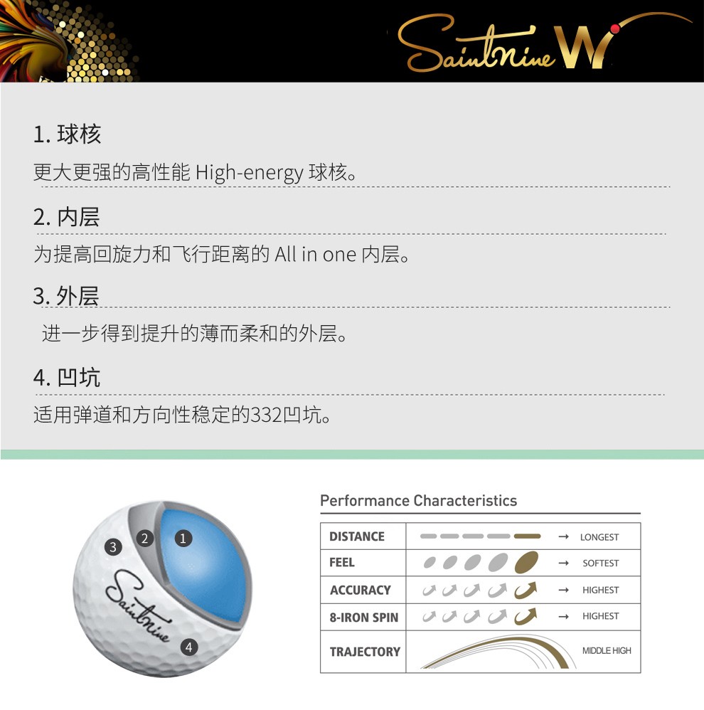 Saintnine W 高尔夫三层球 远距离瞄线款