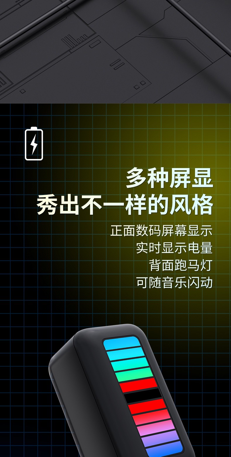 正面数码屏幕显示实时显示电量背面跑马灯可随音乐闪动