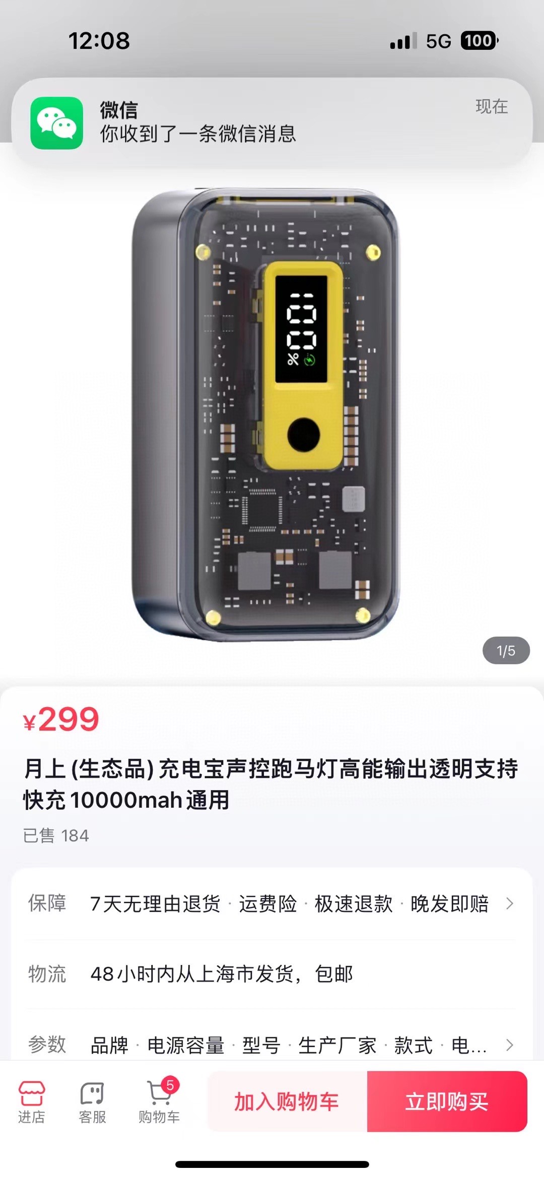 月上(生态品)机甲款充电宝,抖音爆款在售299元,10000mah国标容量 可上飞机,透明设计,内置声控智能跑马灯,双 PD22.5 瓦接口,高能输出,支持快充。