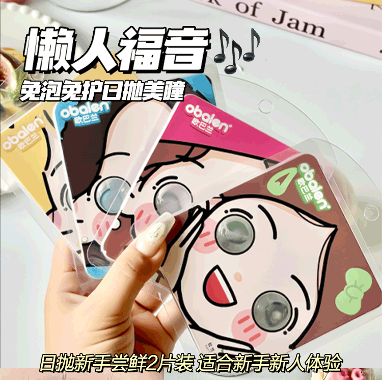 【笑脸娃娃四小盒心动日抛】Obalen欧巴兰懒人福音新手必备日抛美瞳非离子隐形近视眼镜2片装