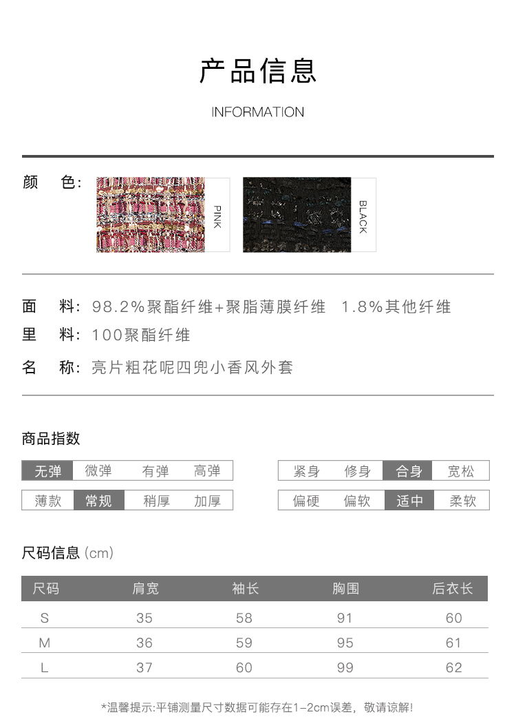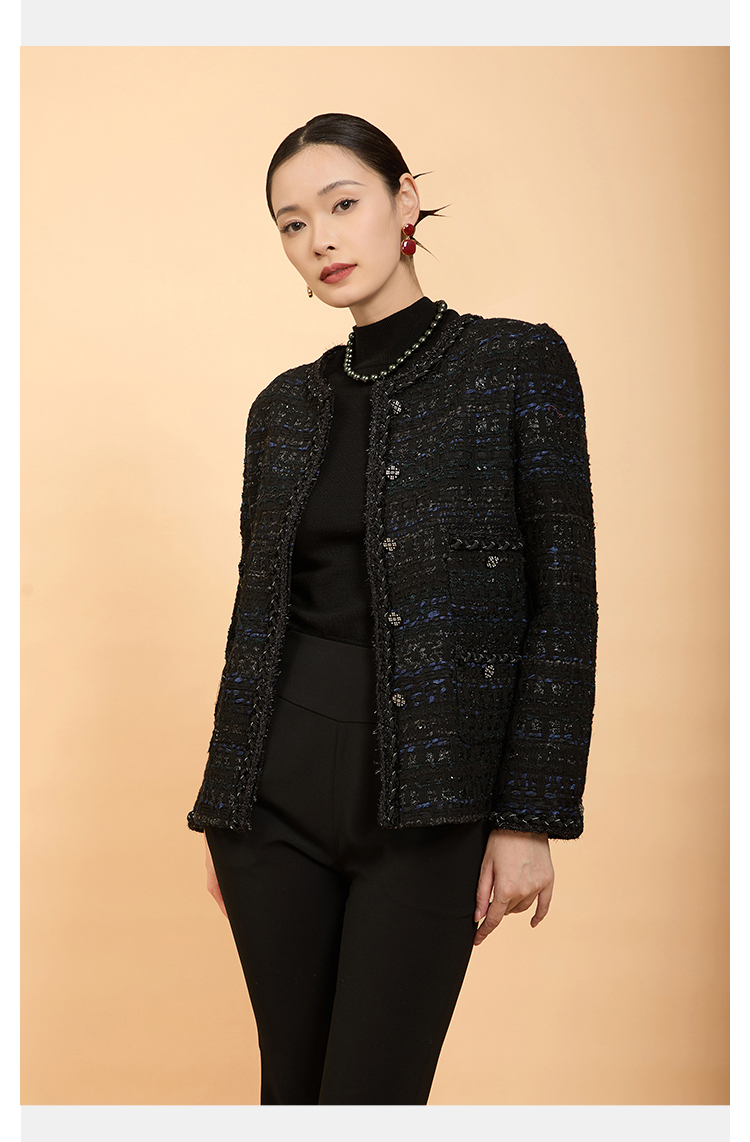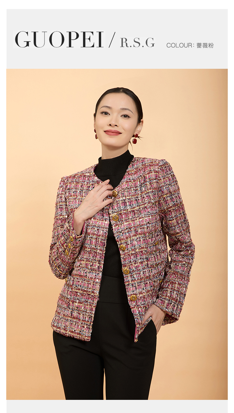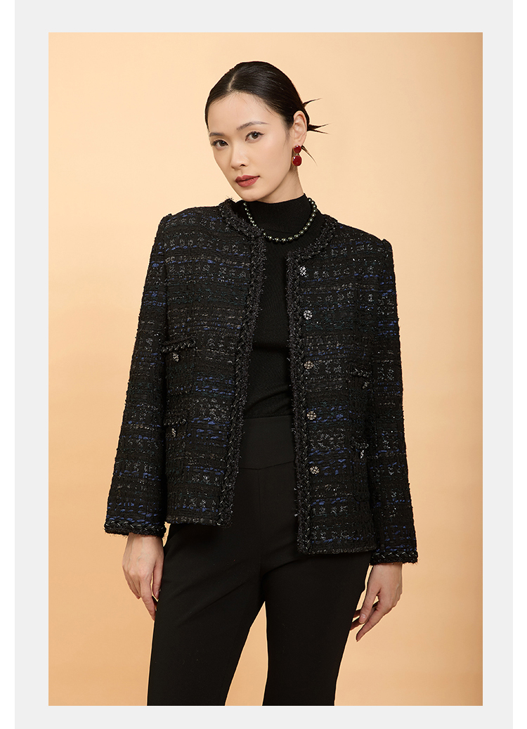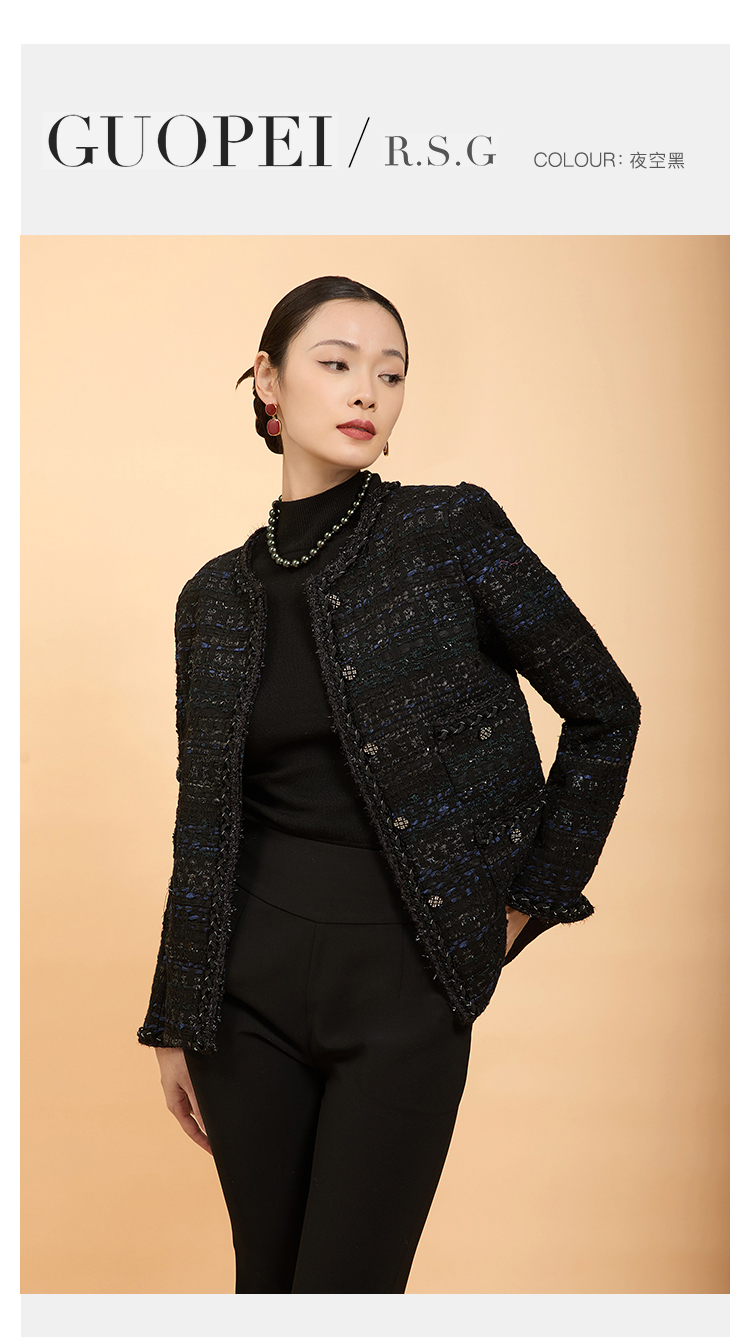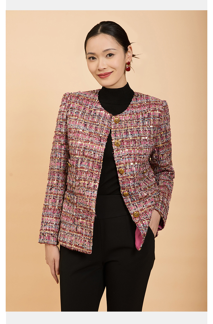 郭培成衣品牌精品系列亮片粗花呢四兜小香风外套