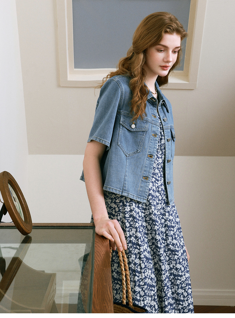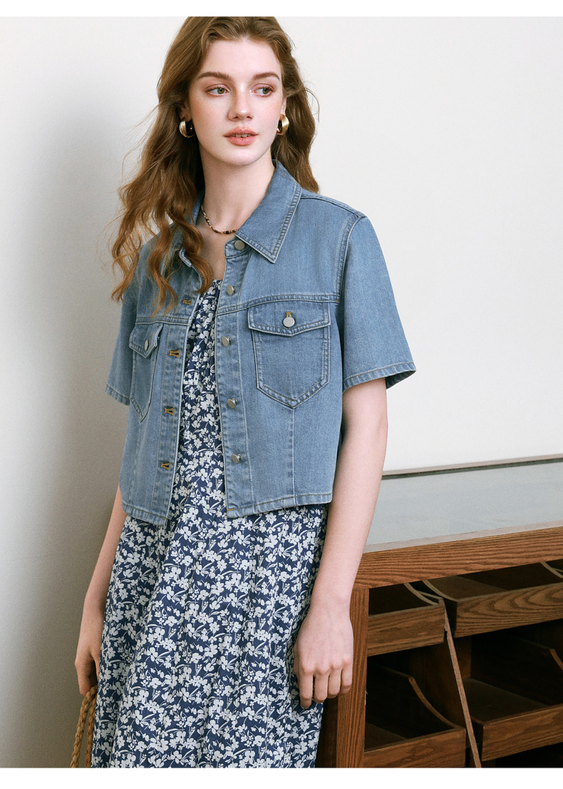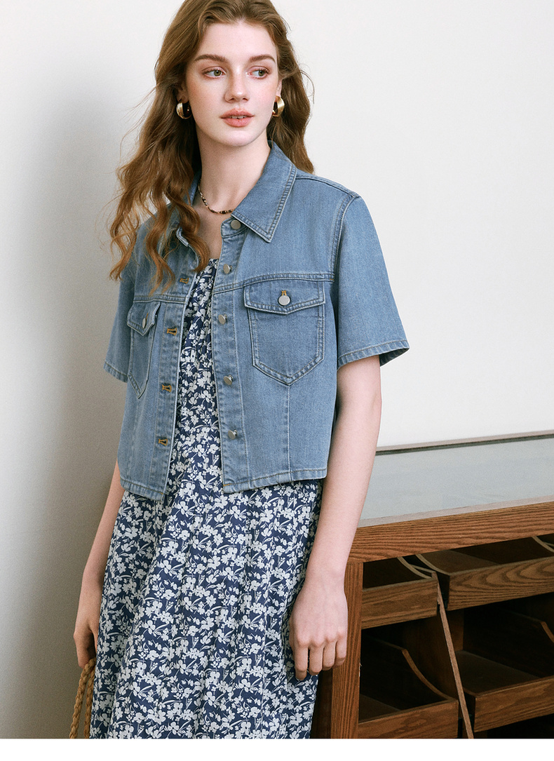 【商场同款】诗凡黎醋酸牛仔短外套25夏新款百搭小上衣3G4310121