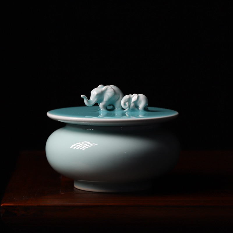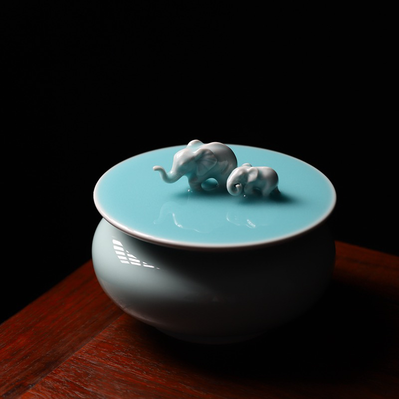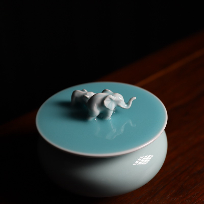 龙泉青瓷名家 太平有象盖罐纯手工陶瓷茶叶罐 中式家居储物罐