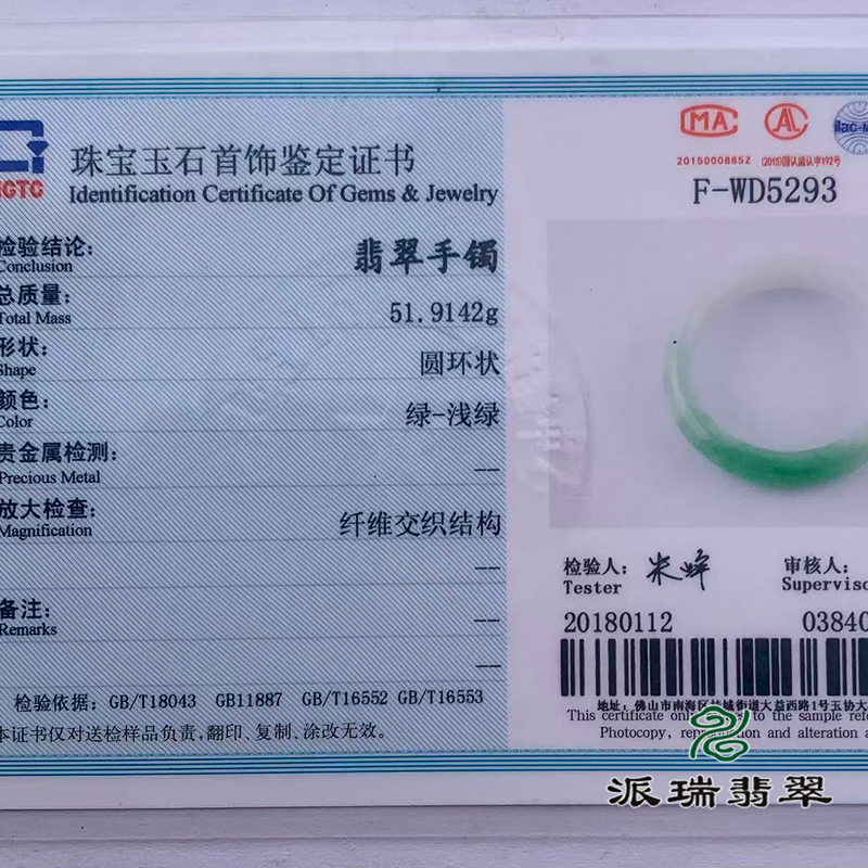 派瑞翡翠 翡翠手镯 糯种 绿色