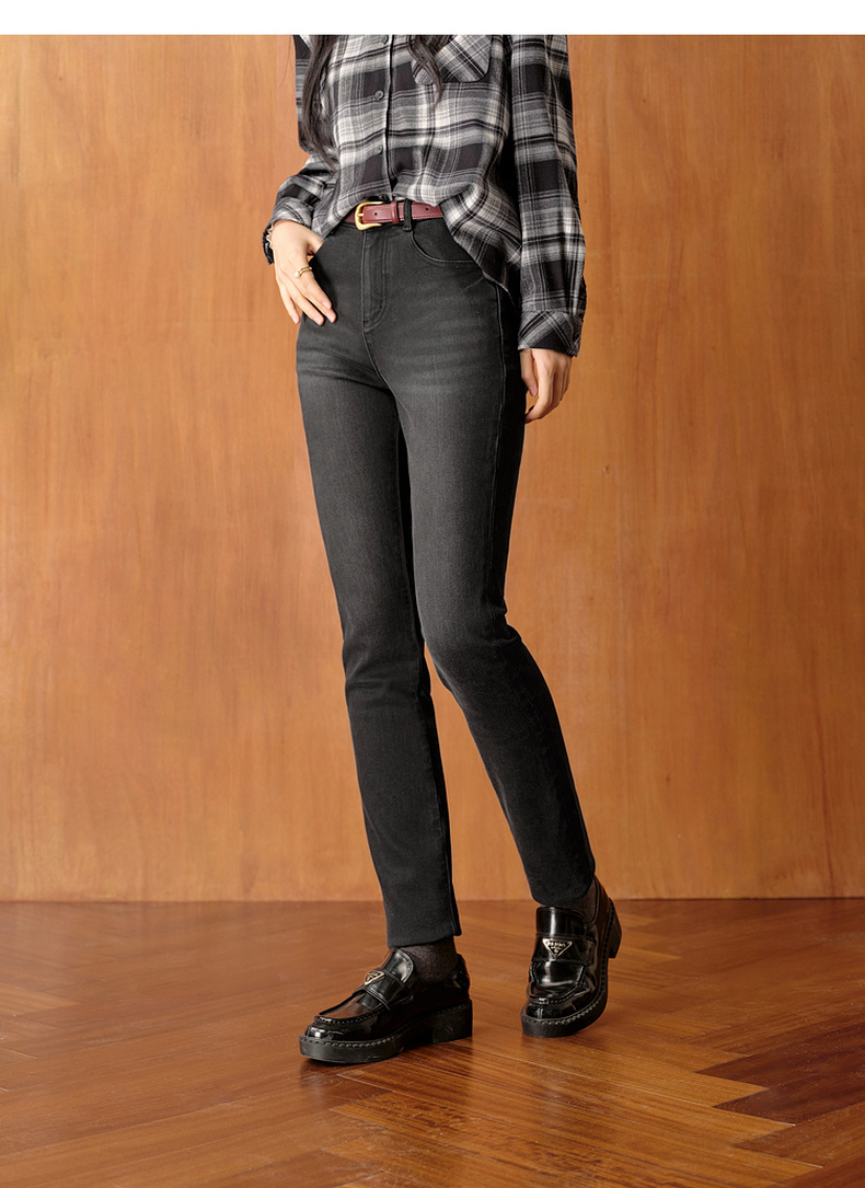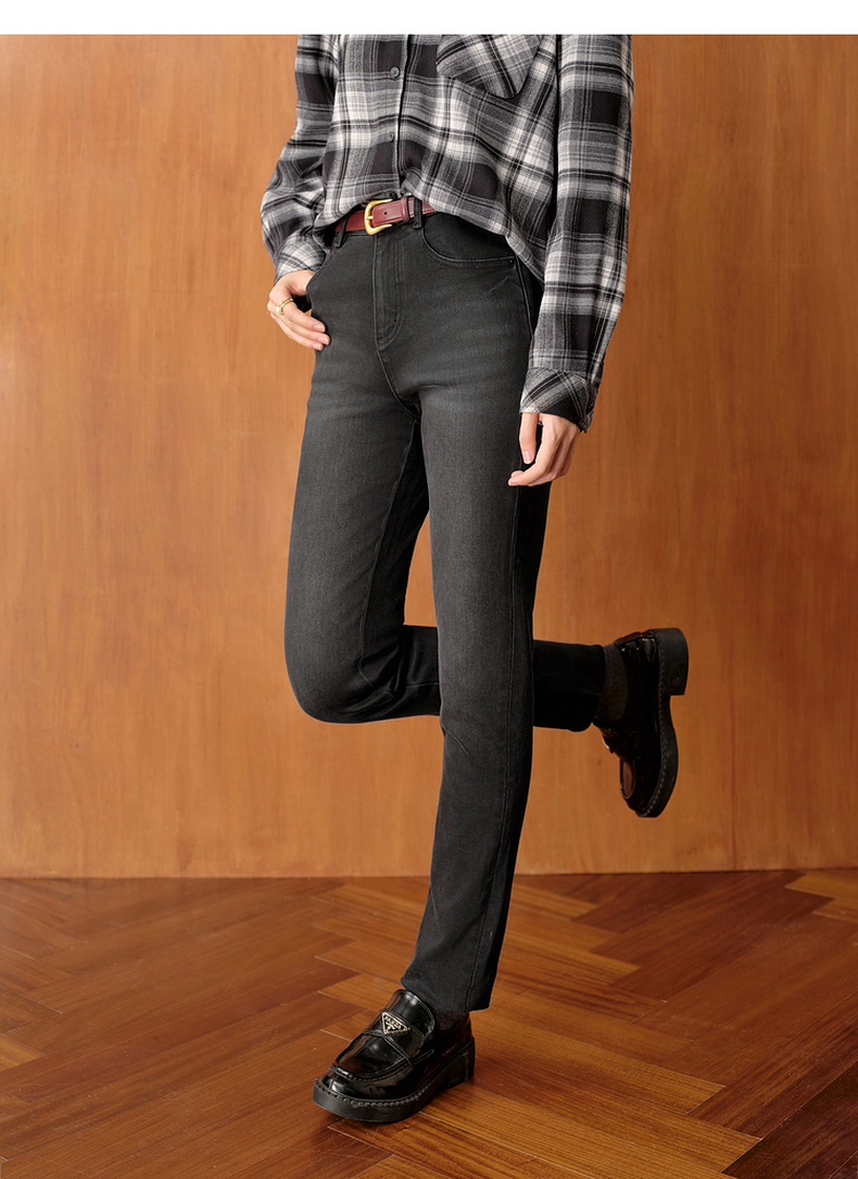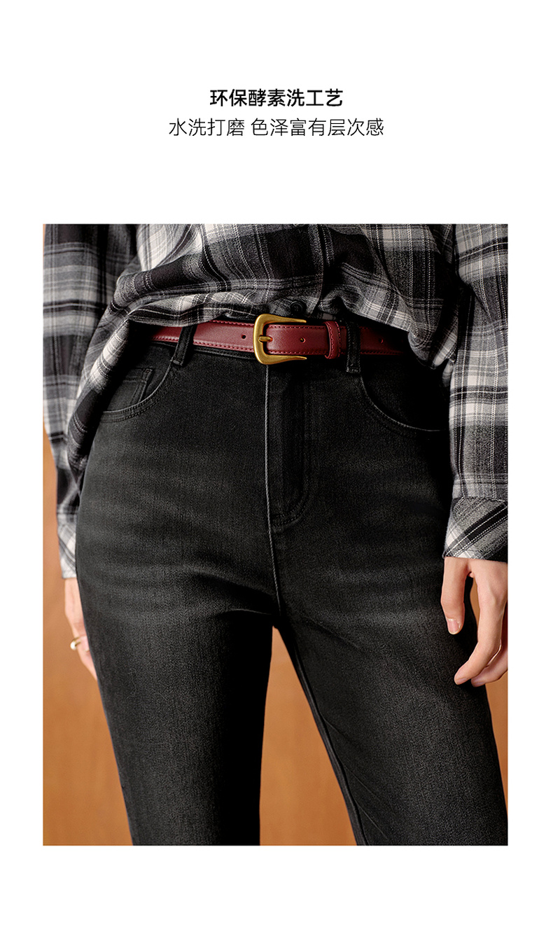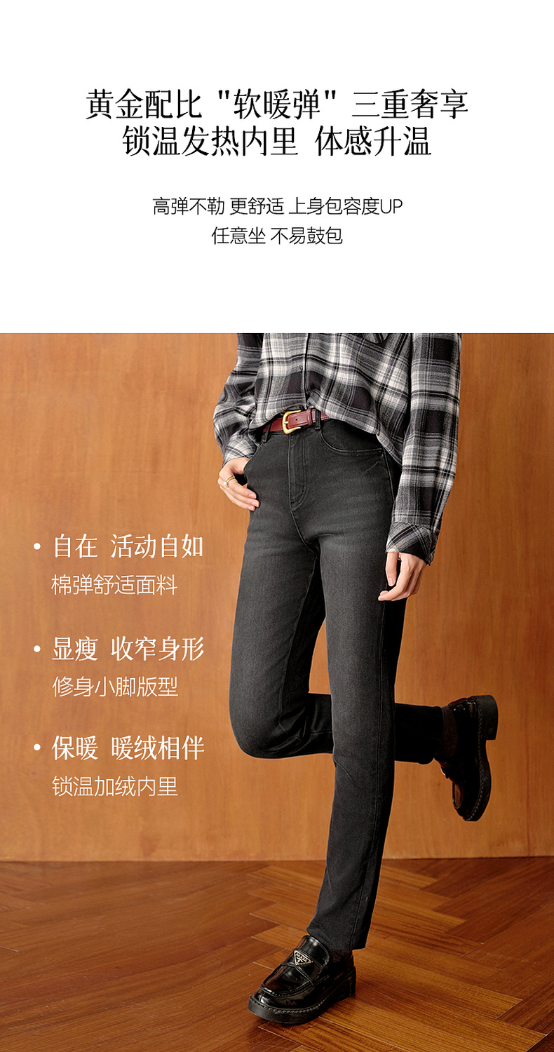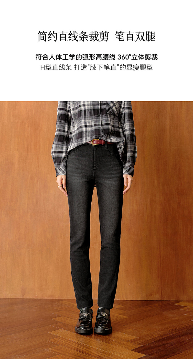 【严选】孟子义代言诗凡黎铅笔修身小脚牛仔裤2025冬新款加绒弹力显瘦靴裤7GA151321