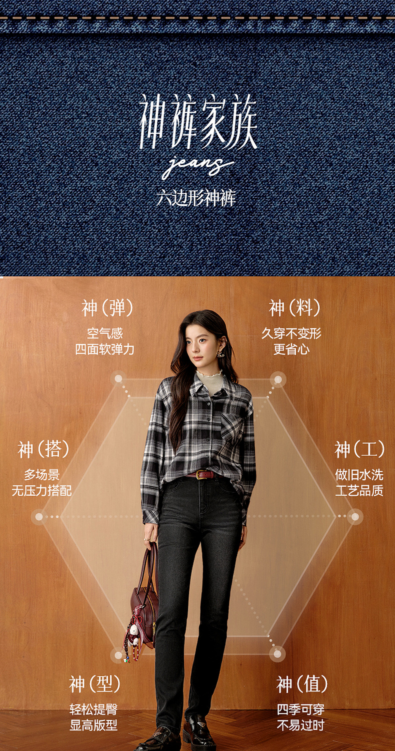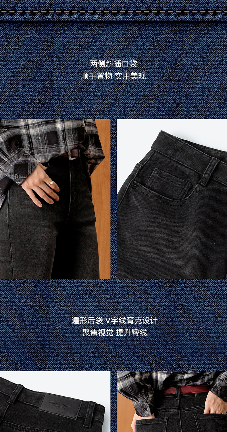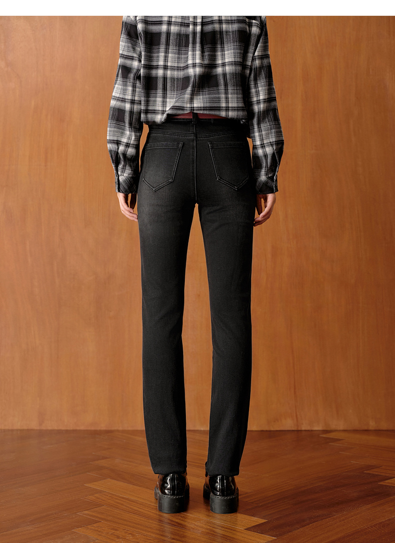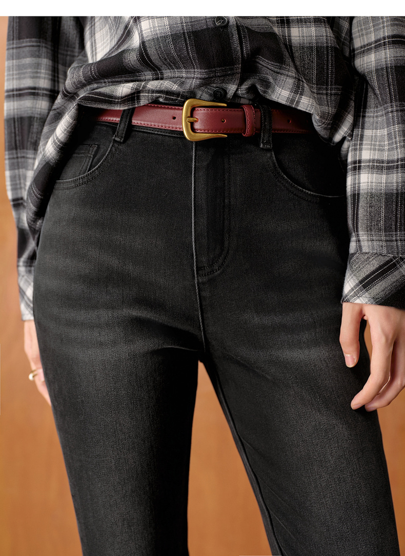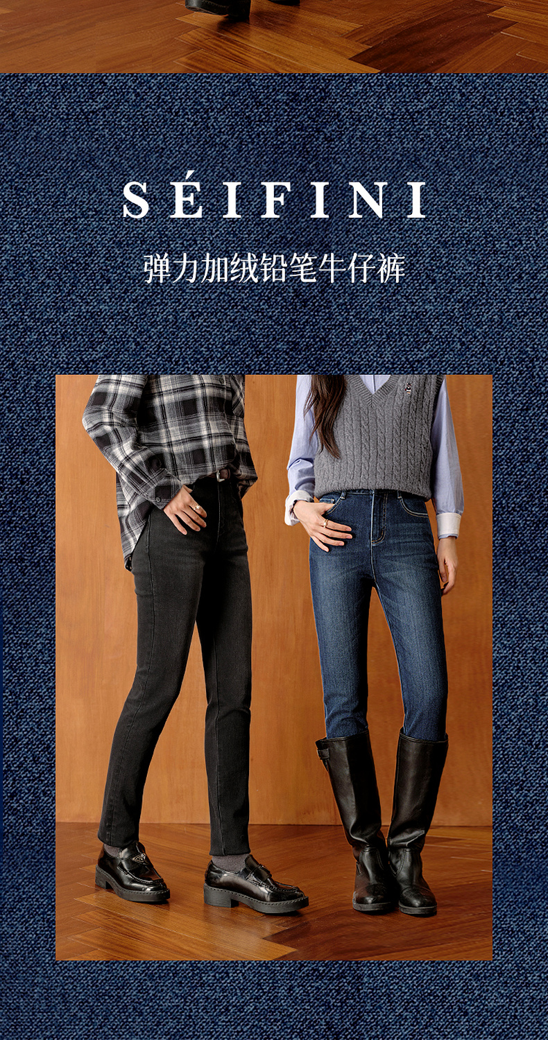 【严选】孟子义代言诗凡黎铅笔修身小脚牛仔裤2025冬新款加绒弹力显瘦靴裤7GA151321