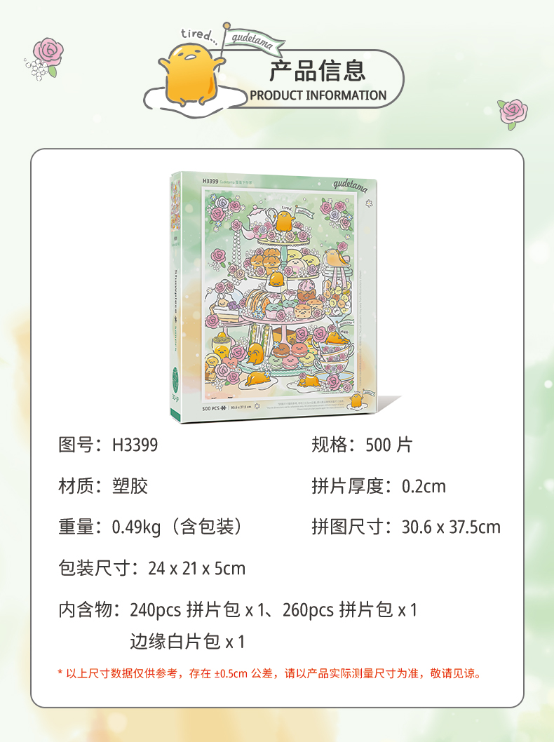 500片 平面塑料拼图 H3399 Gudetama 蛋蛋下午茶