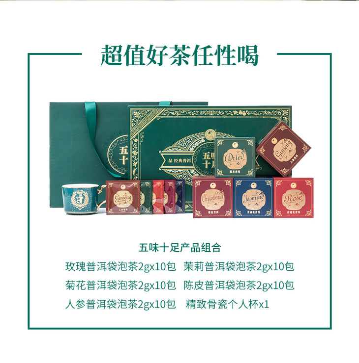 澜沧古茶五味十足玫瑰菊花茉莉青柑普洱茶熟茶生茶袋泡茶包礼盒装