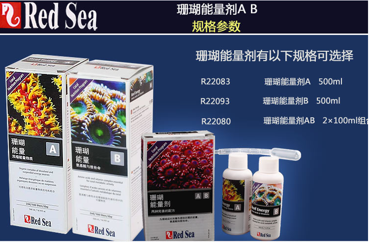 红海RedSea珊瑚能量剂AB+ PLUS液体珊瑚粮 浓缩能量物质500\100ML