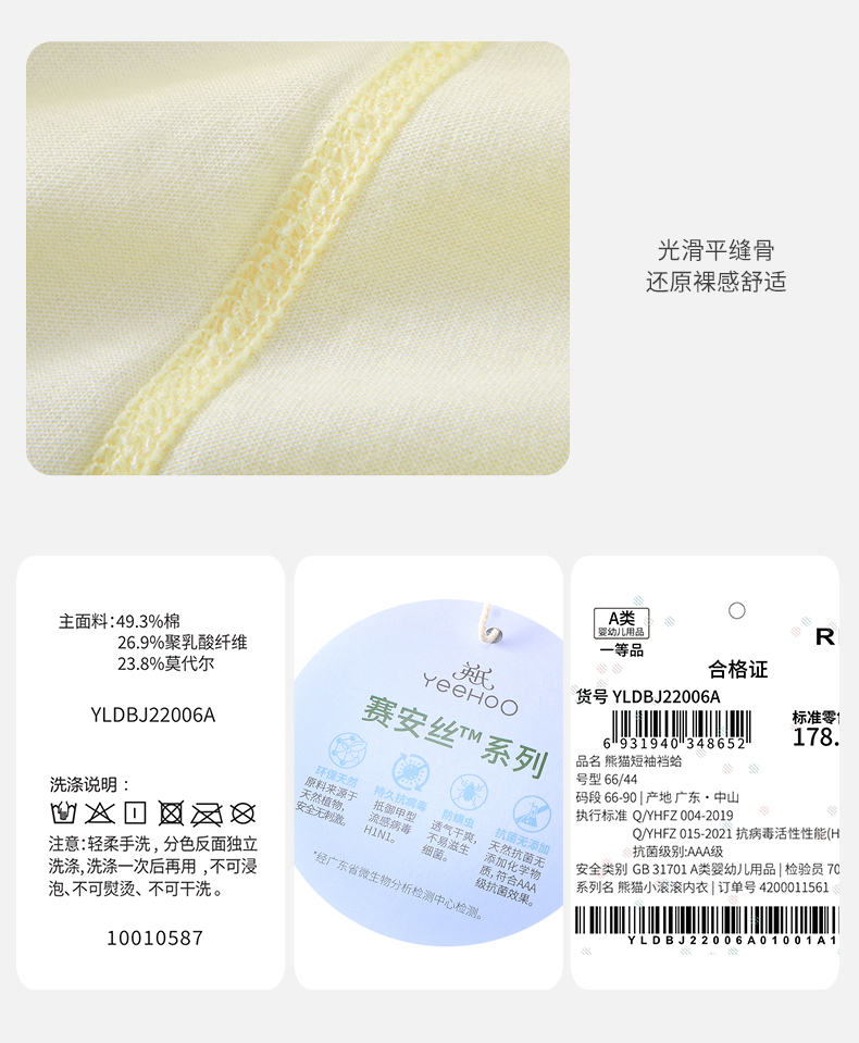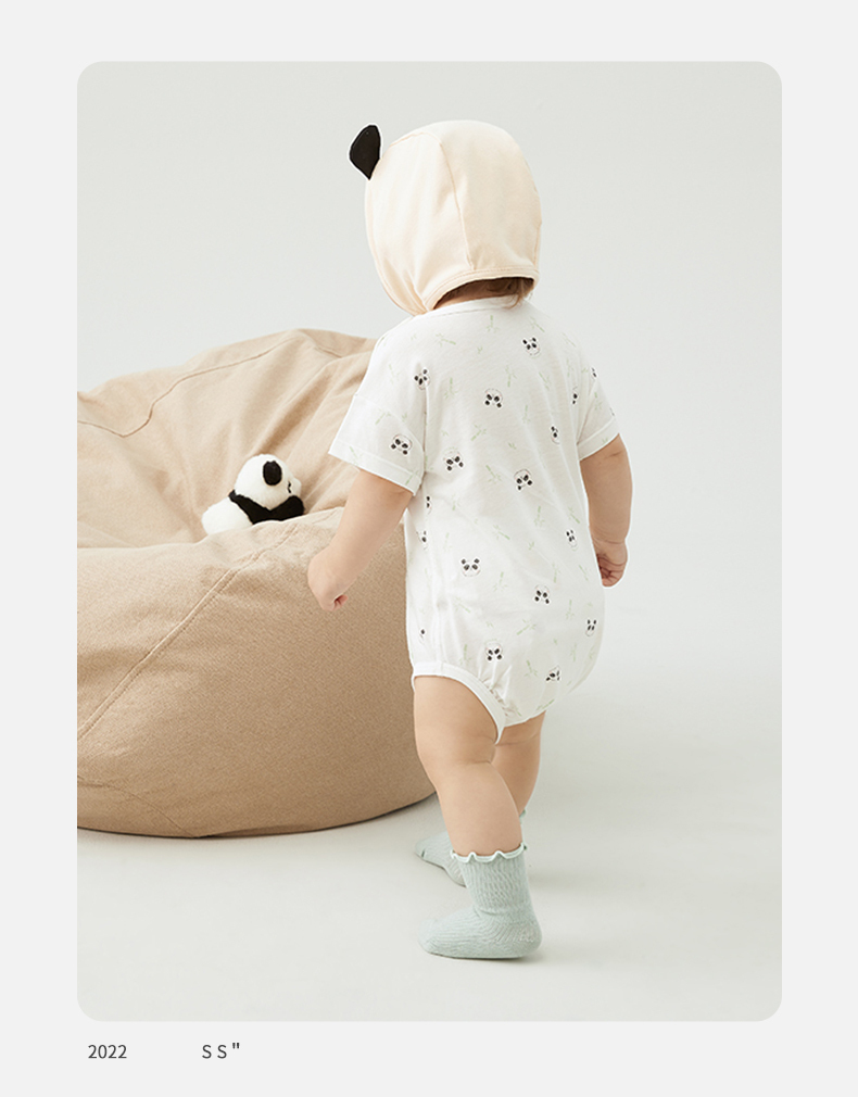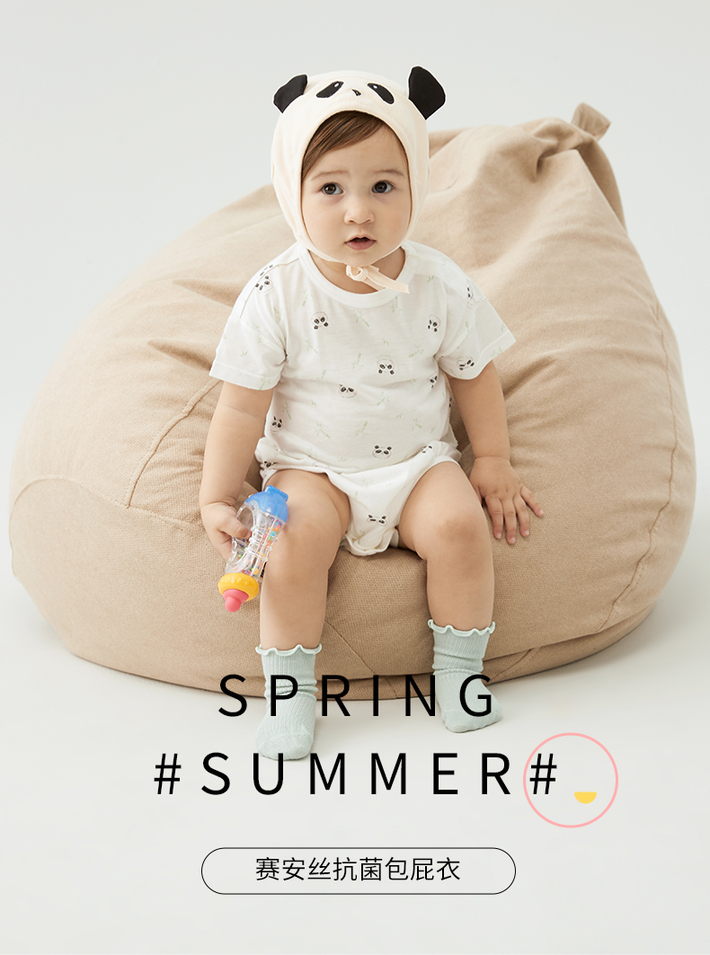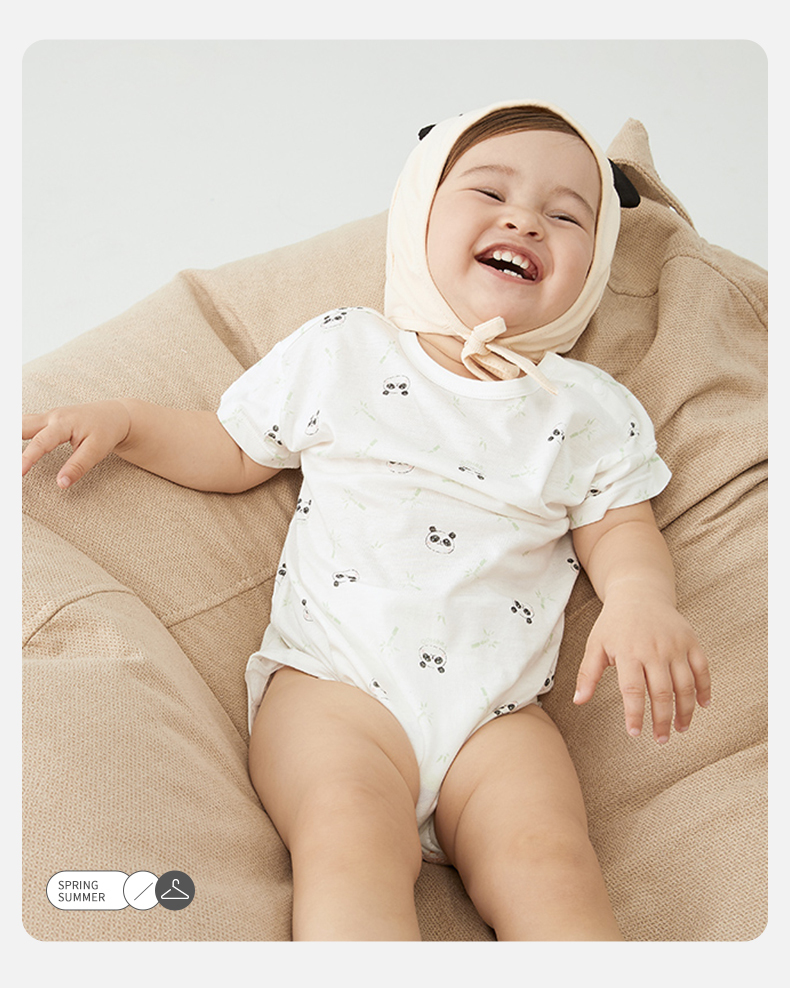 英氏宝宝连体服夏季男女婴儿短袖赛安丝套头包臀哈衣YLDBJ22005A