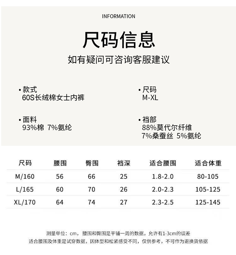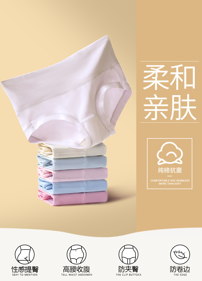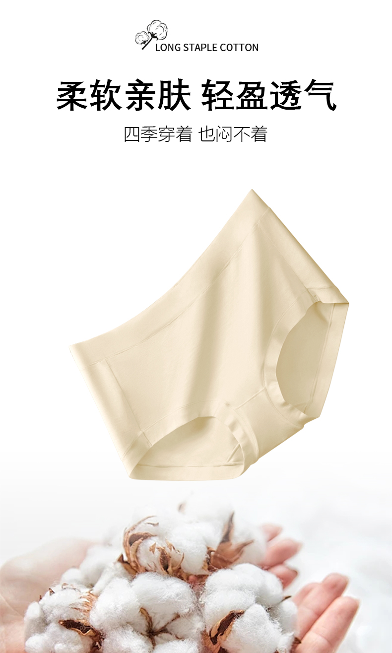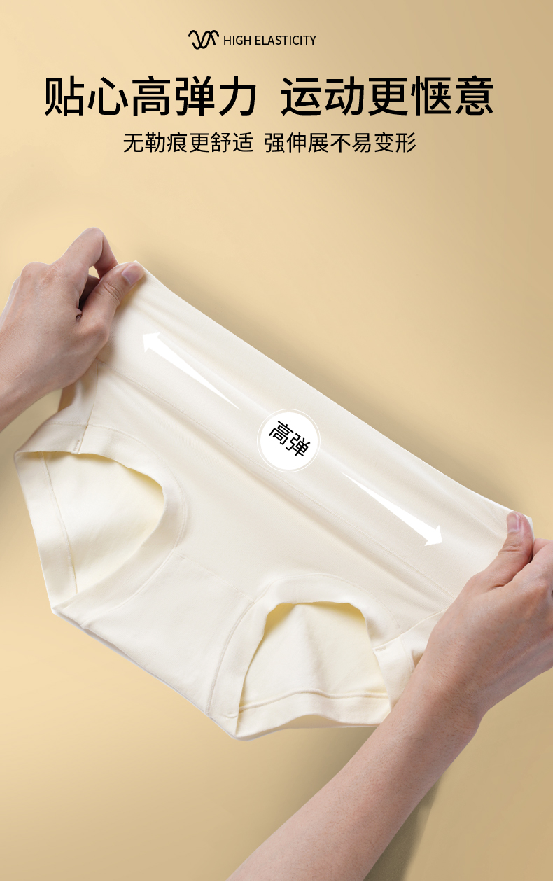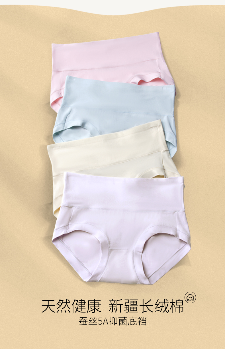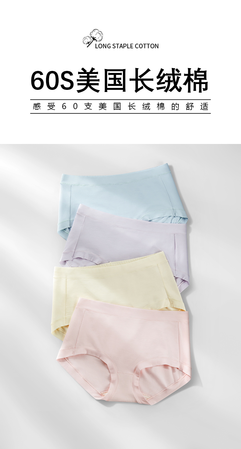 【莫代尔蚕丝5A抑菌】爱帝女60支棉中腰内裤3条装
