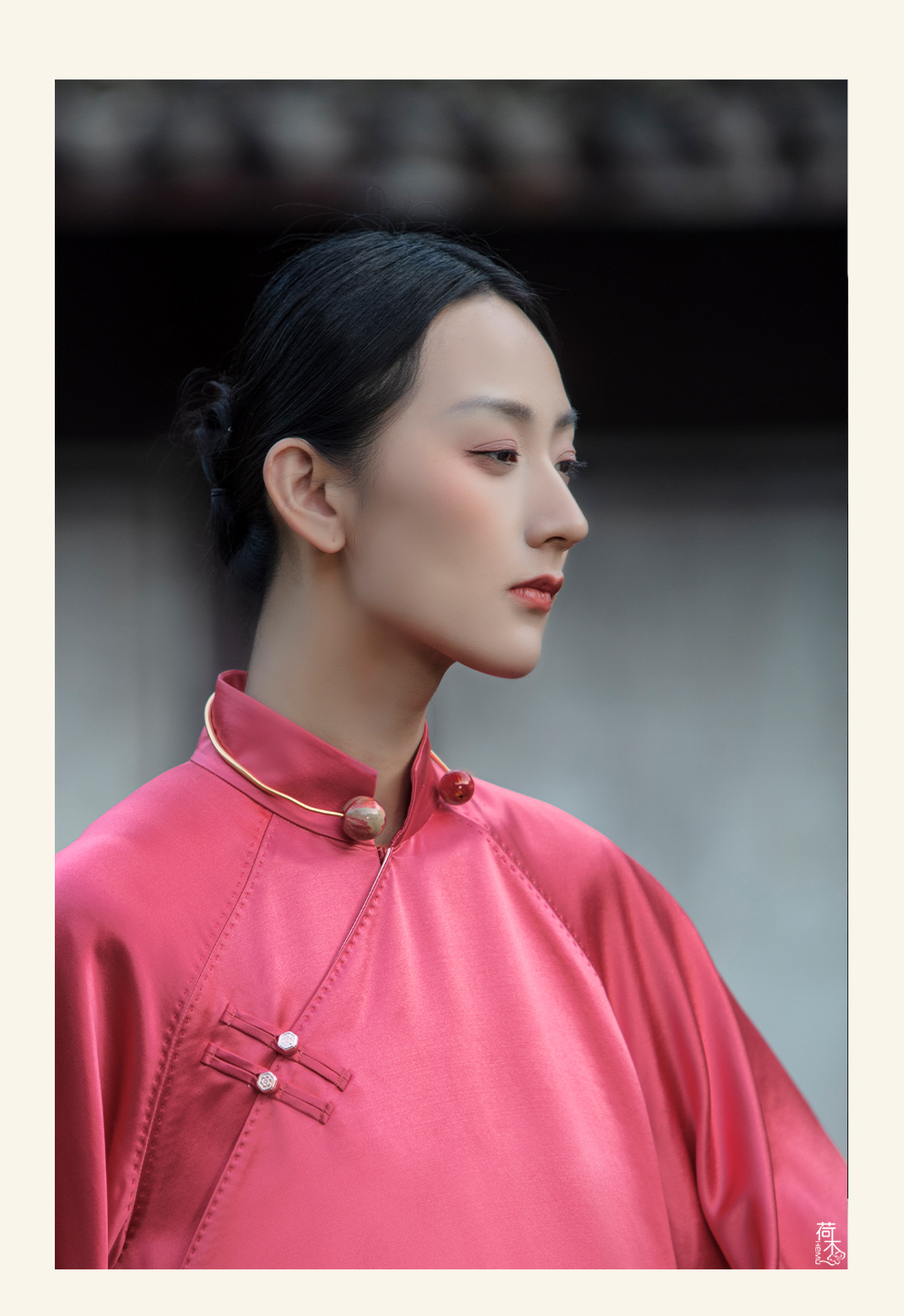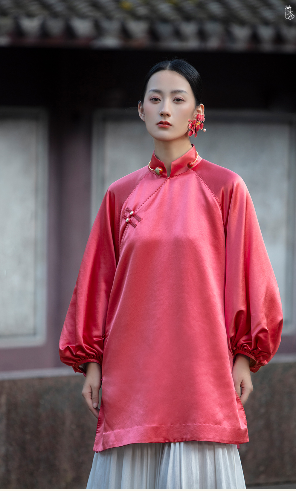 荷木HEMU岐山·双层领重缎印花长袍
