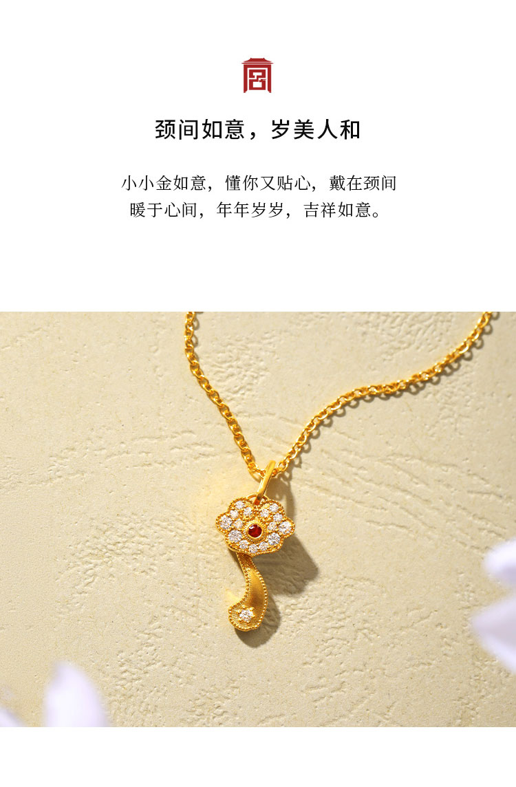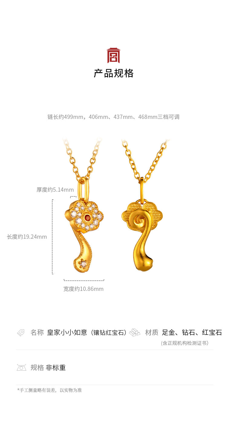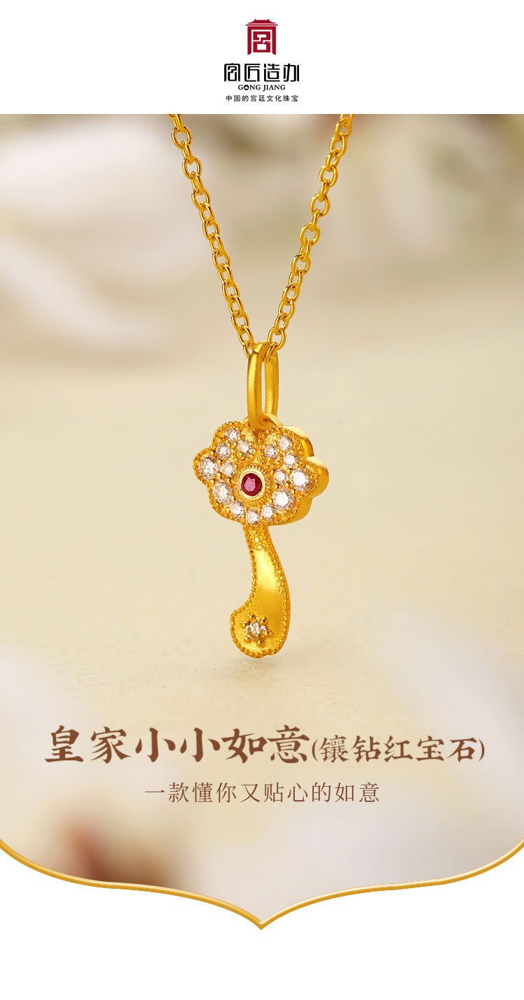 宫匠造办 皇家小小 如意项链 黄金镶钻红宝石