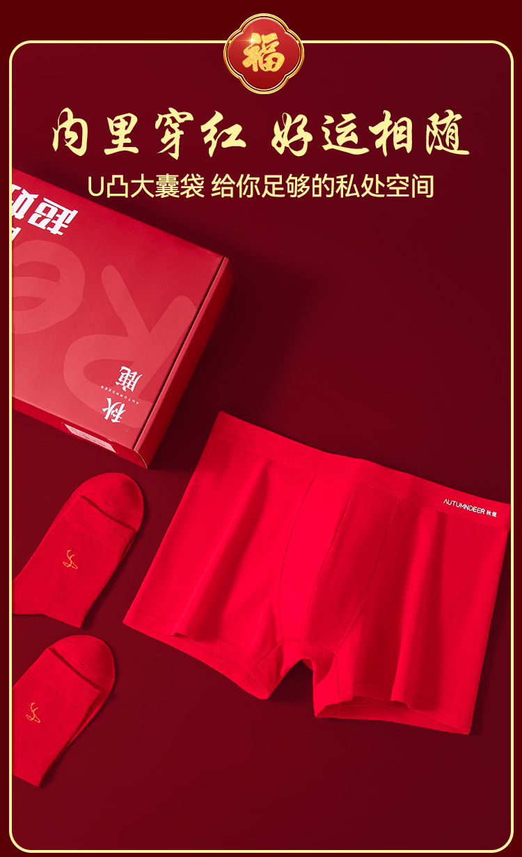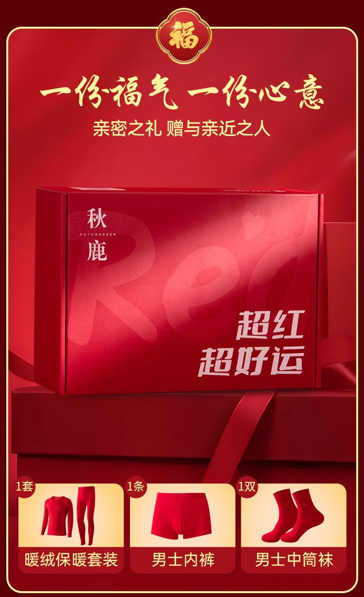 【清仓捡漏】【男士磨毛套装+内裤+福袜】【L-3XL】【秋鹿】男士本命年礼盒套装