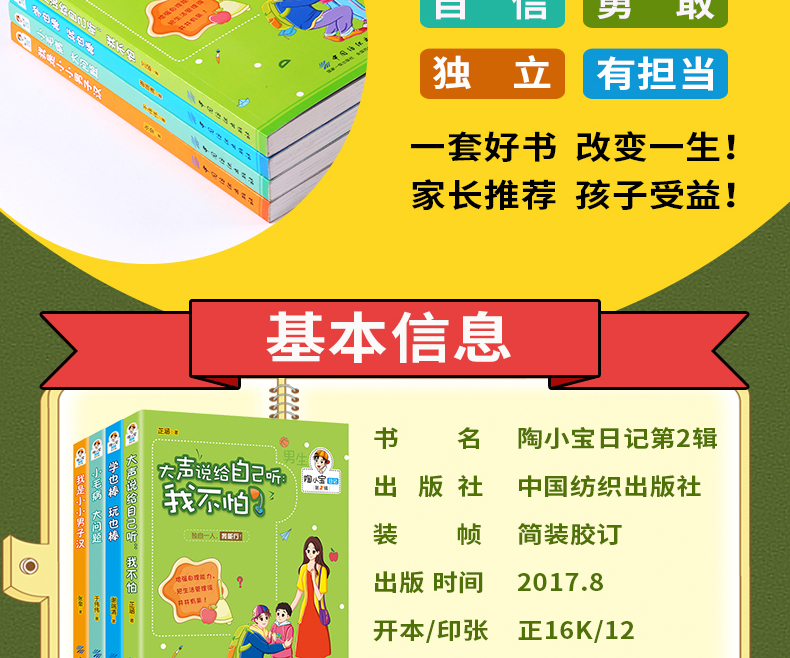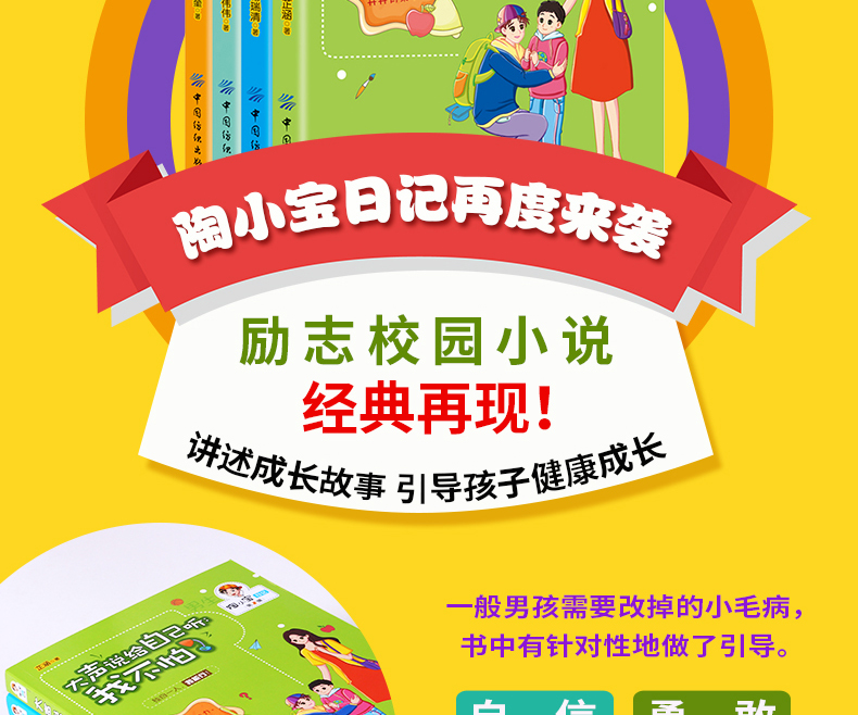 陶小宝日记:全4册青少年校园励志小说适合8-9-13-14岁四五六年级初一中小学生阅读的课外书10-15岁畅销书男孩励志性格书