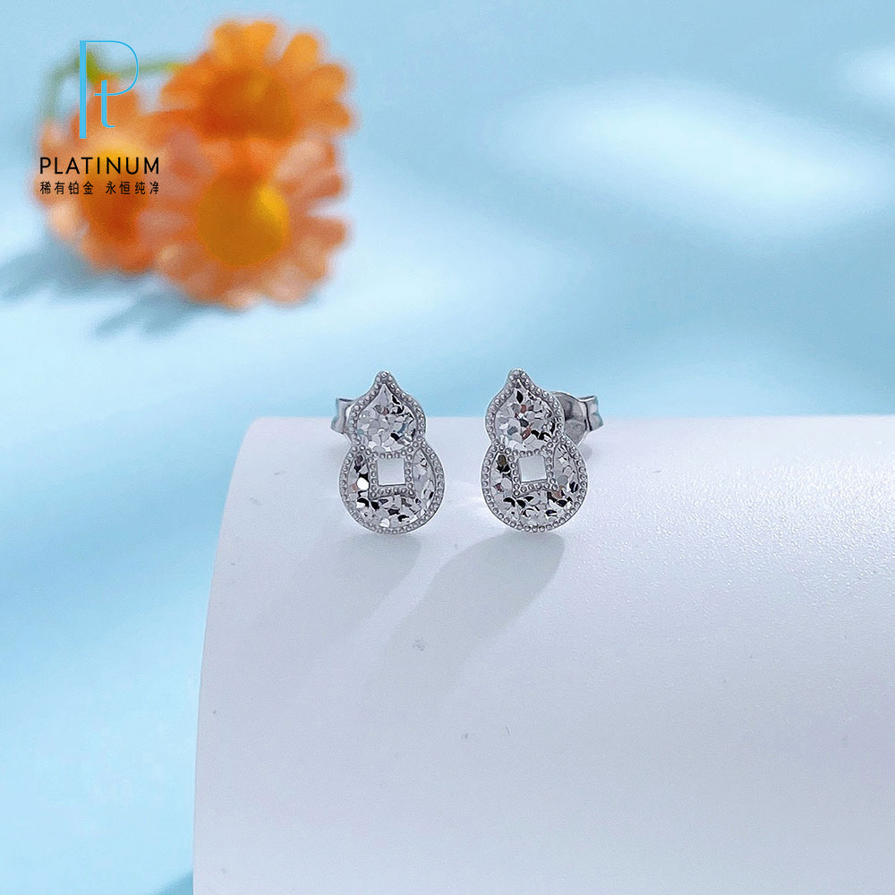 【限时8.8折】【线上铂金馆】PT950 #葫芦 #碎碎冰 【国际铂金协会】铂金镂空福禄双至铜钱造型葫芦贺岁耳饰耳钉(BES00202)(预售4-7天发货,一经下单不支持退款)