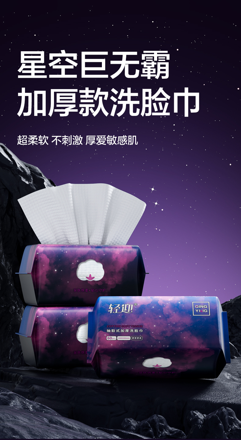 轻迎一次性洗脸巾星空款60抽7包加5包20抽中样