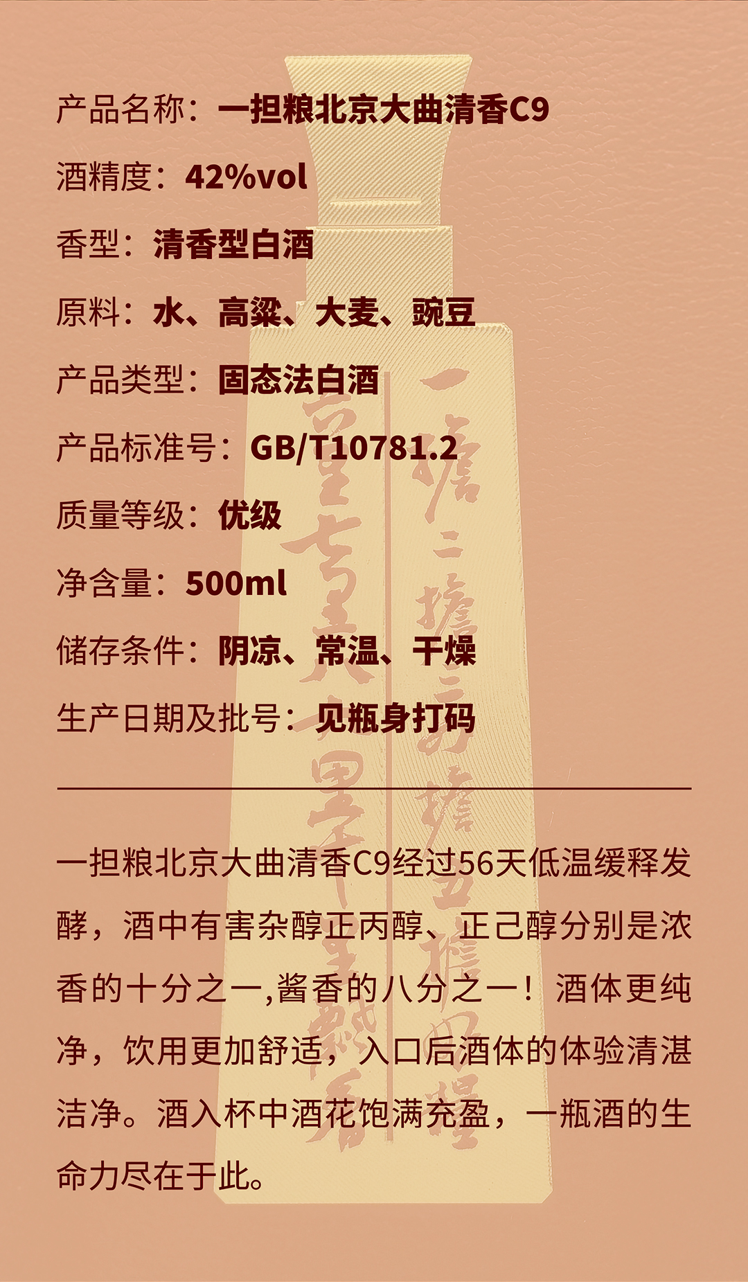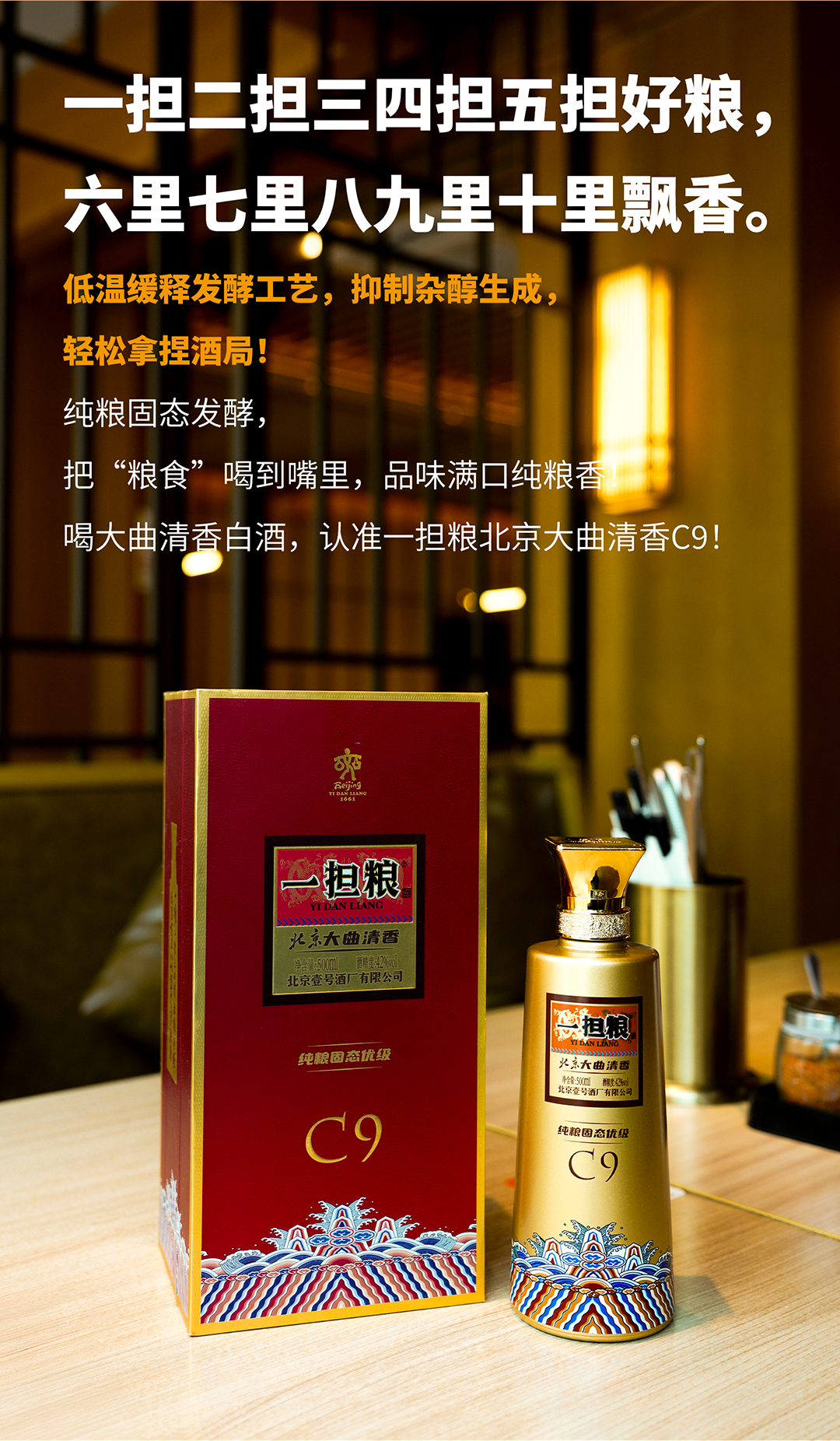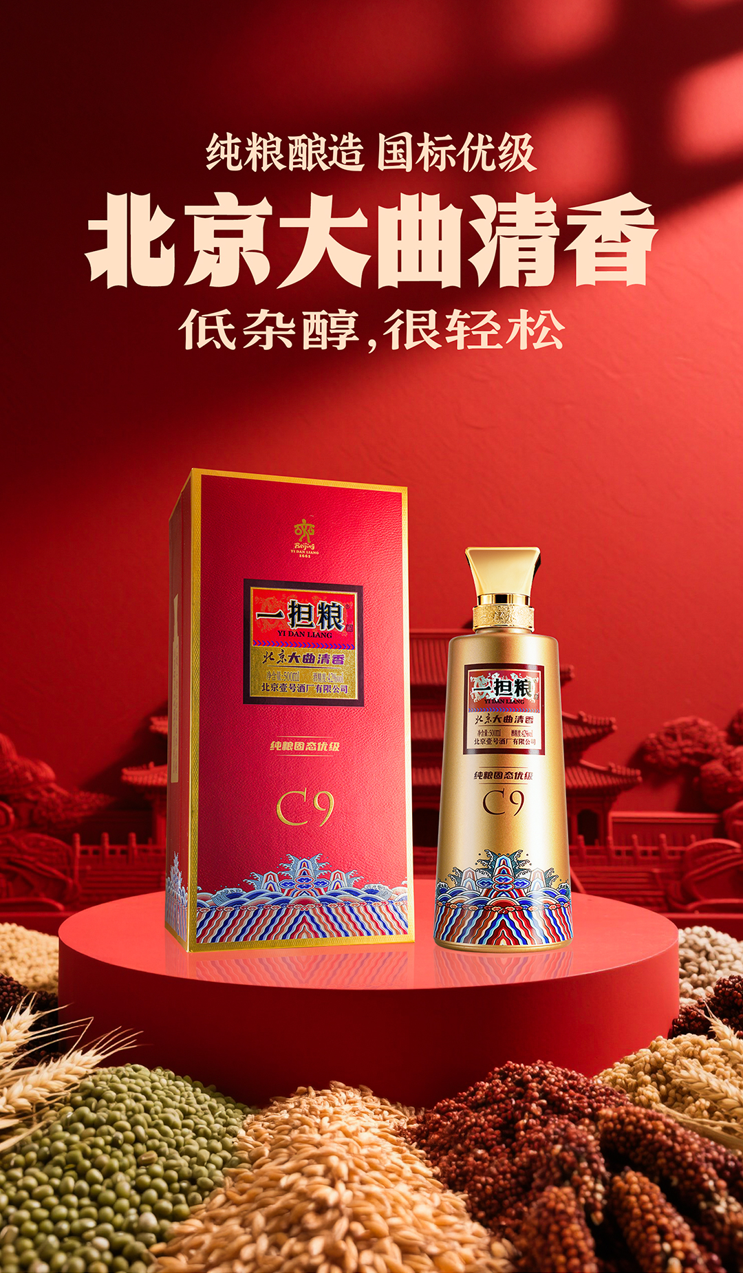 【酒厂直营】一担粮北京大曲清香C9 高端盒装酒 清香型白酒(1瓶装)42%vol.