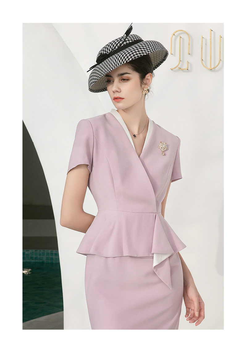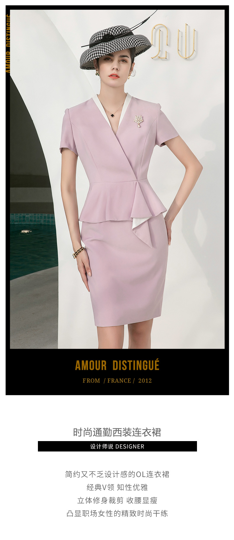 IWY/高端粉色连衣裙制服职业西装套装女气质时尚美容师前台工作装Q718