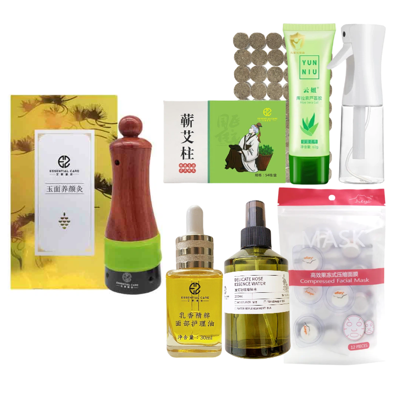 养颜灸礼包(玉面养颜灸+乳香精粹面部护理油+滢润玫瑰精粹水+压缩面膜+库拉索芦荟胶+花水喷雾瓶+蕲艾柱54柱)