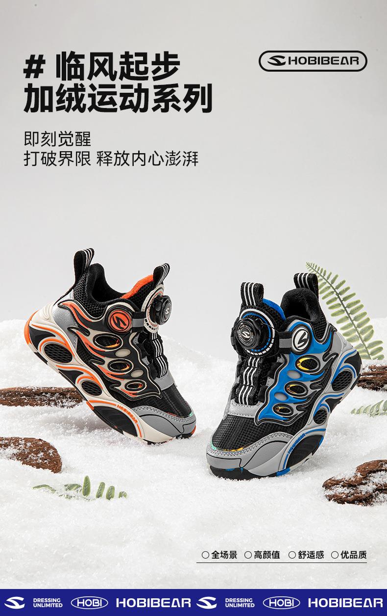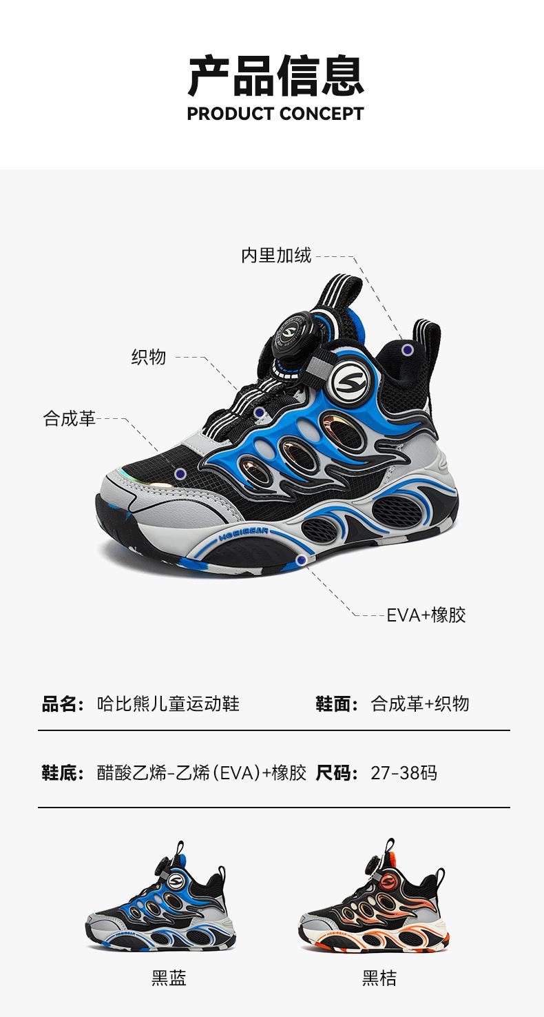 哈比熊加绒男童冬季二棉保暖篮球鞋户外运动鞋日常纽扣鞋