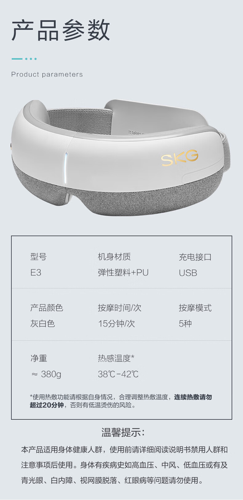 SKG眼部按摩仪SKG E3眼部按摩器 灰色