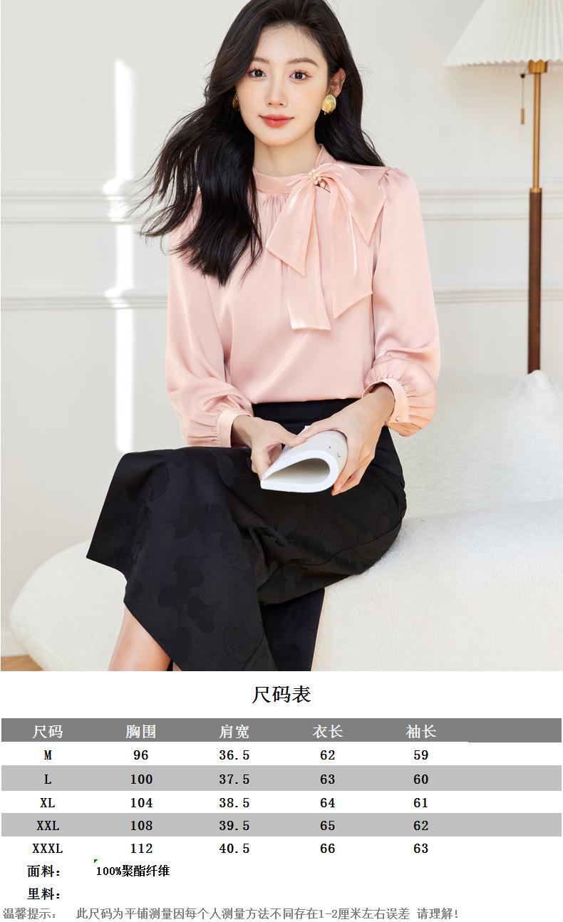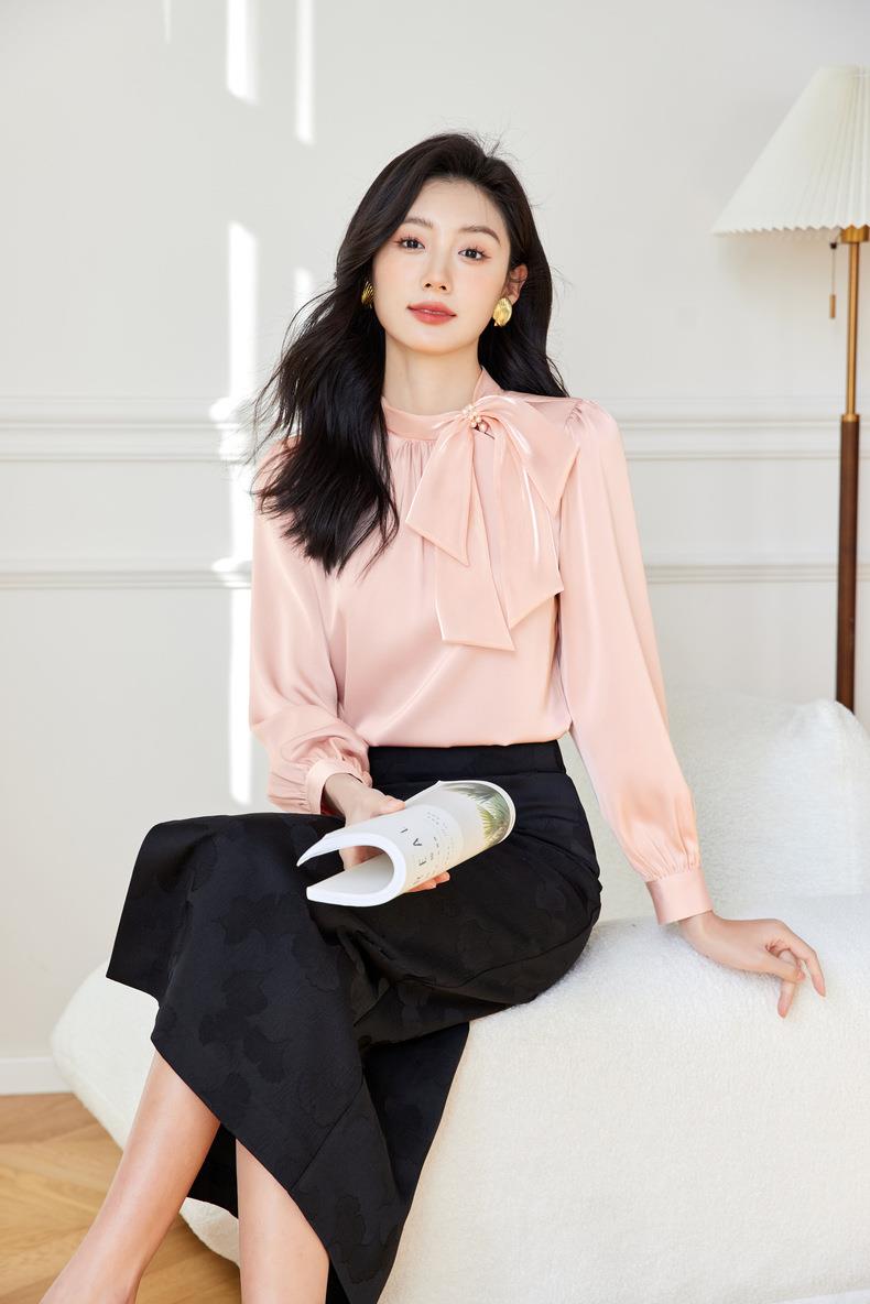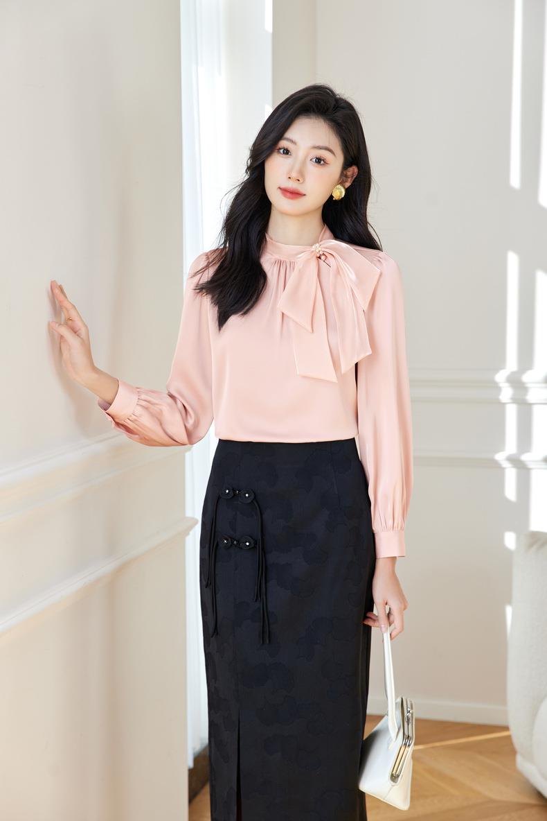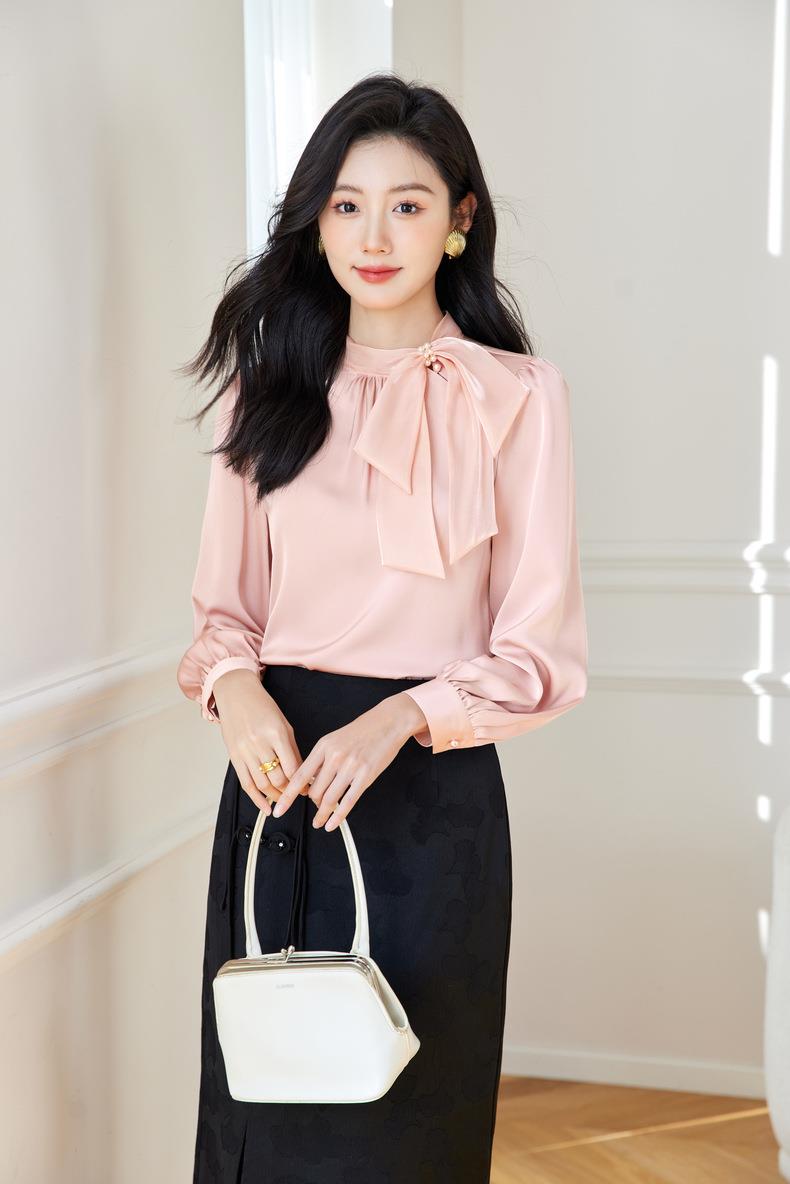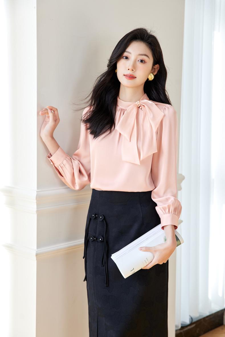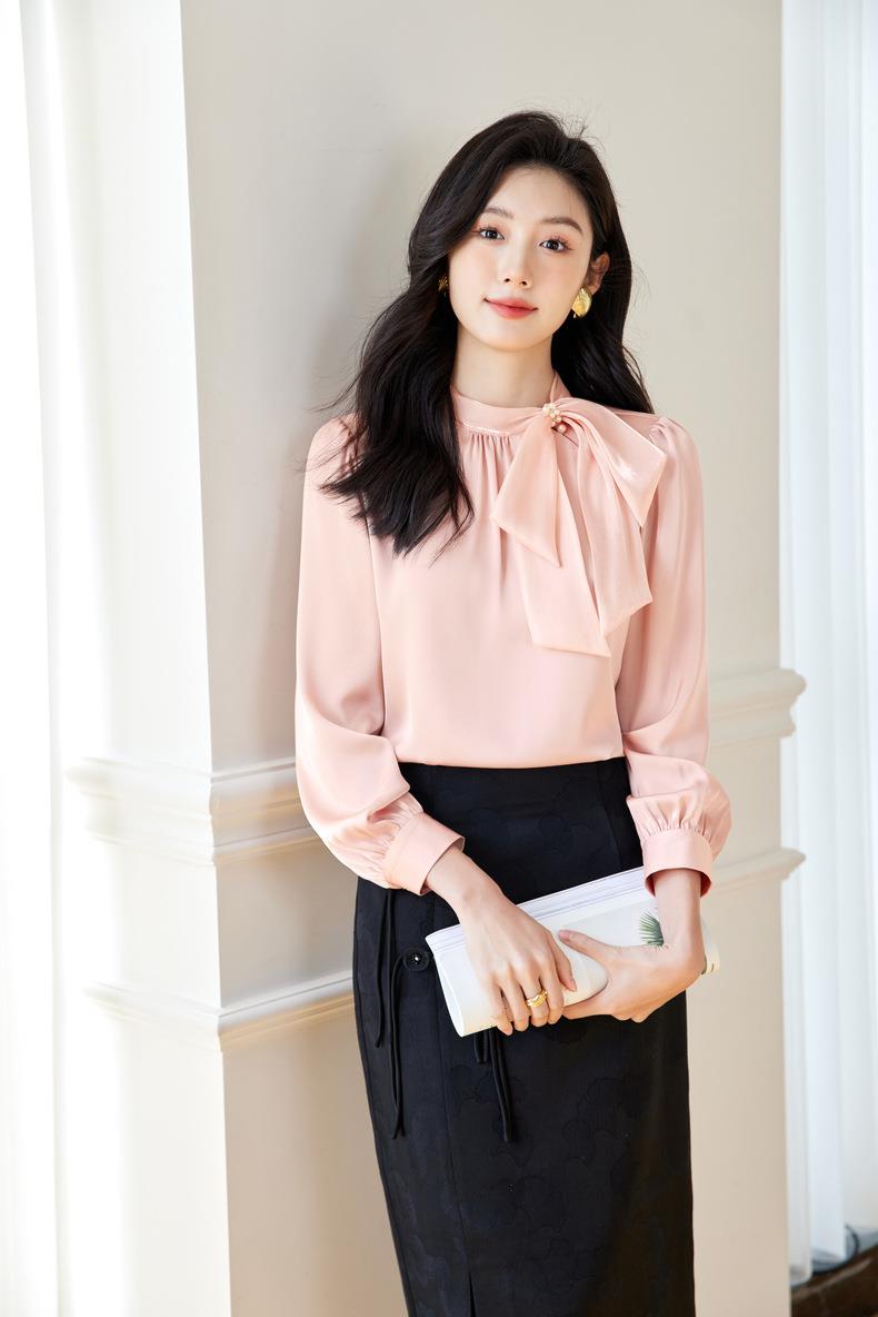 立领蝴蝶结雪纺衫上衣2024春装新款洋气小衫长袖女衬衣0593