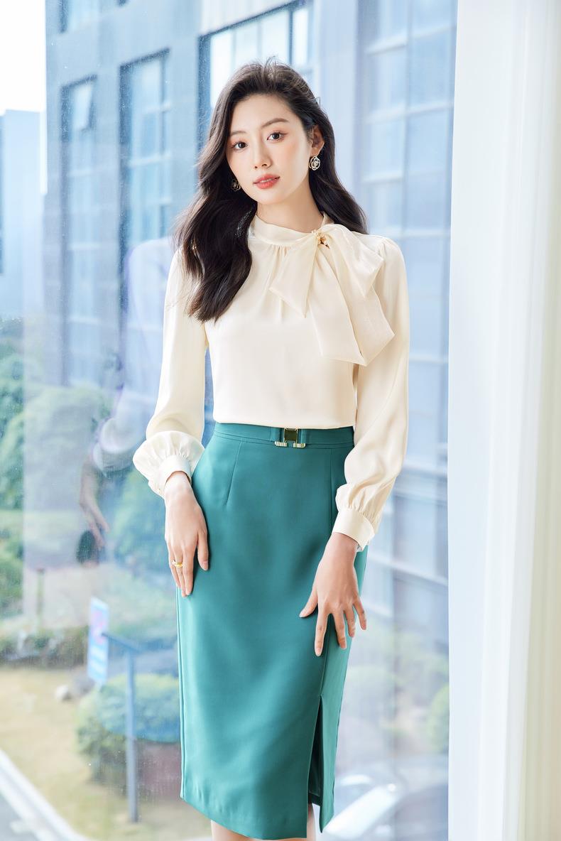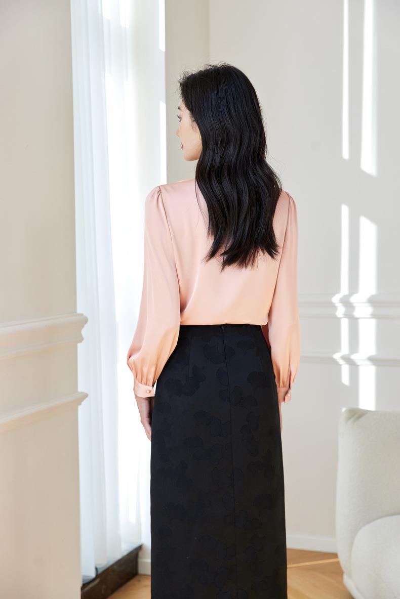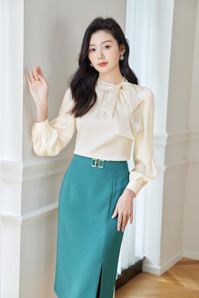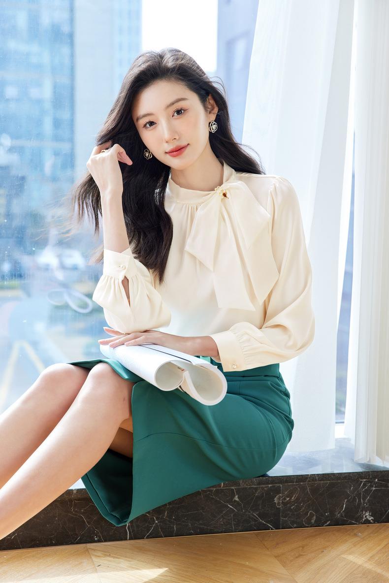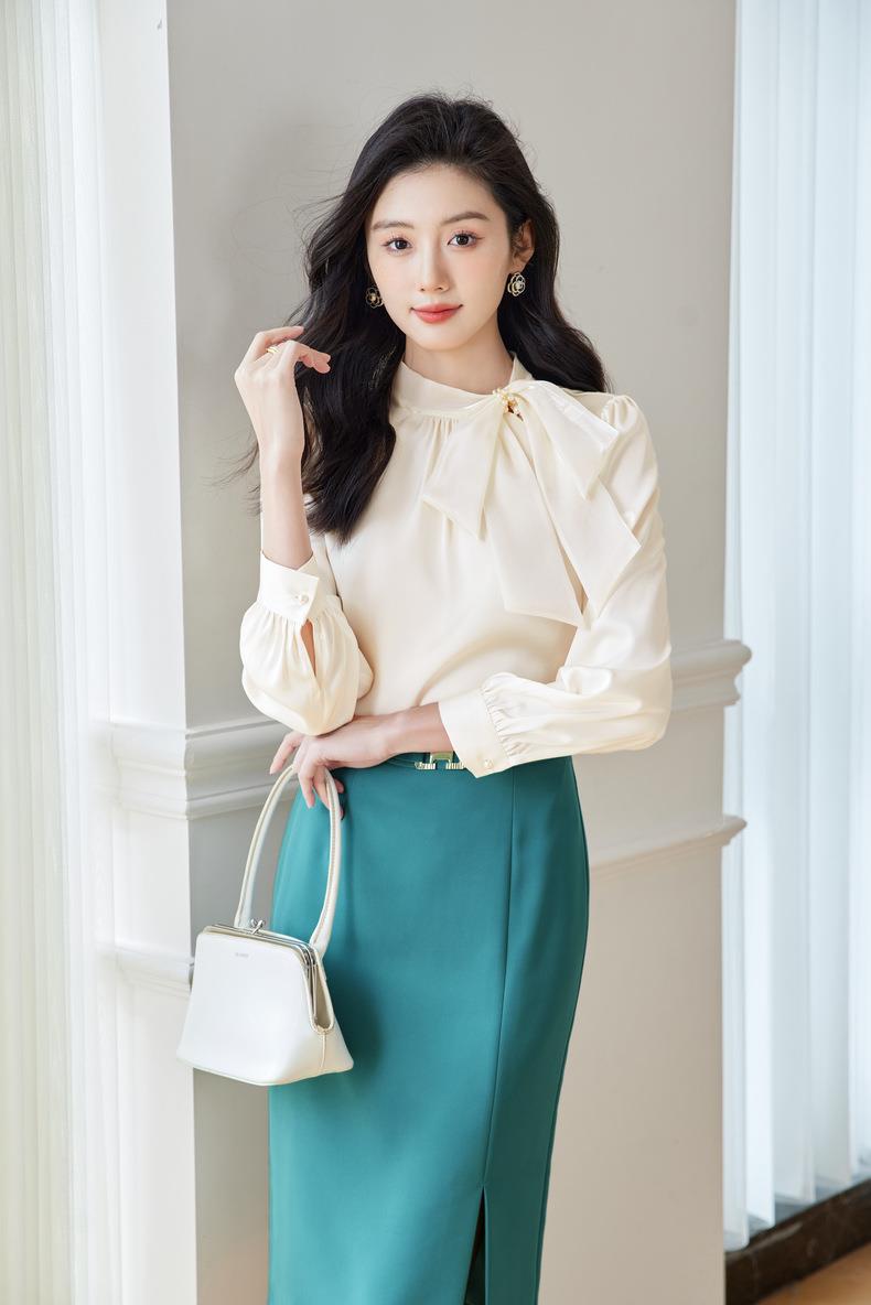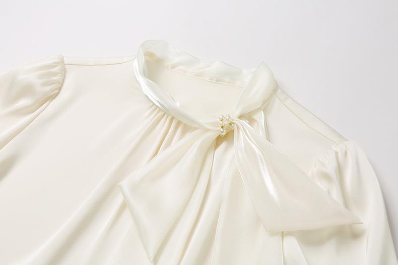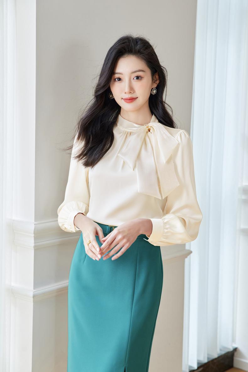 立领蝴蝶结雪纺衫上衣2024春装新款洋气小衫长袖女衬衣0593