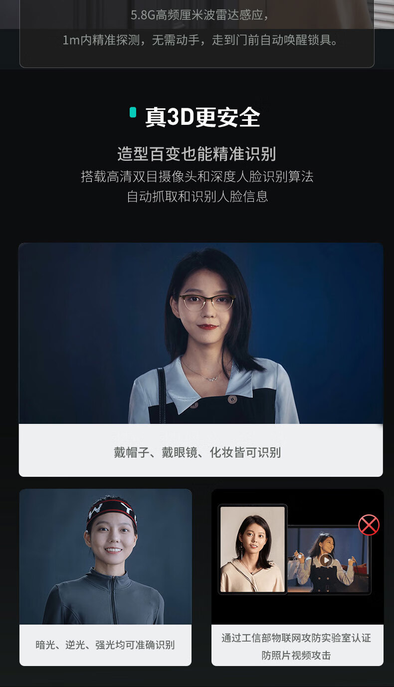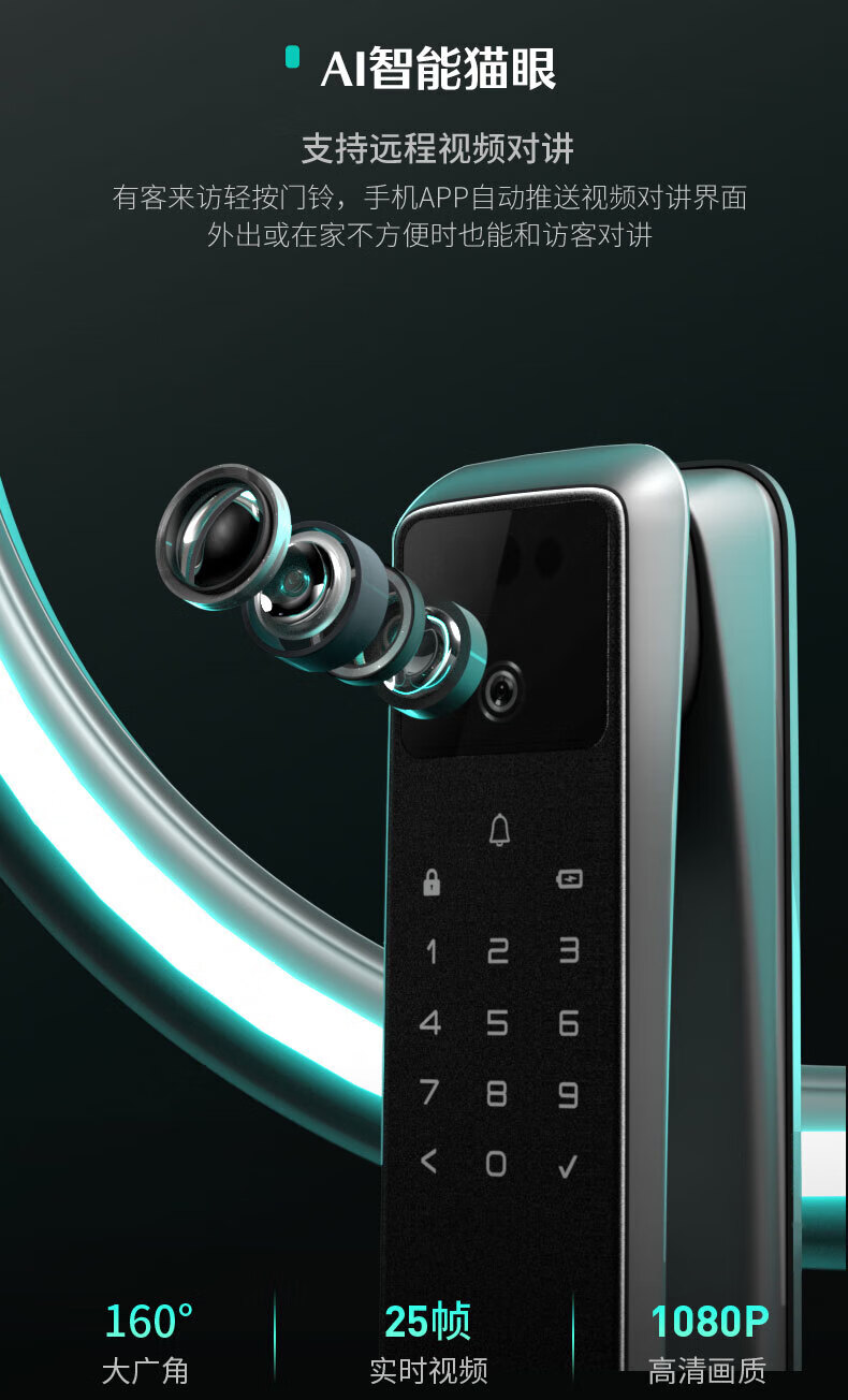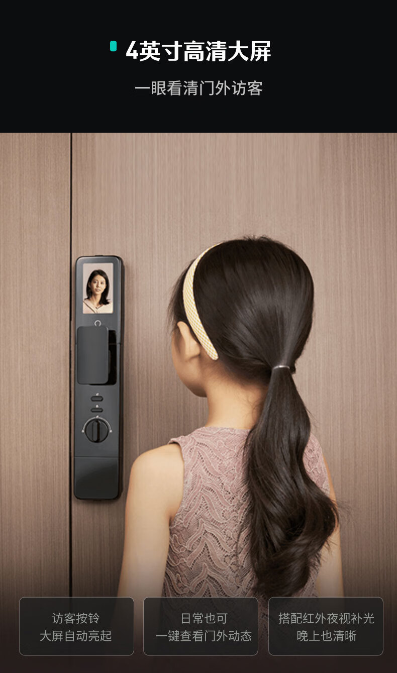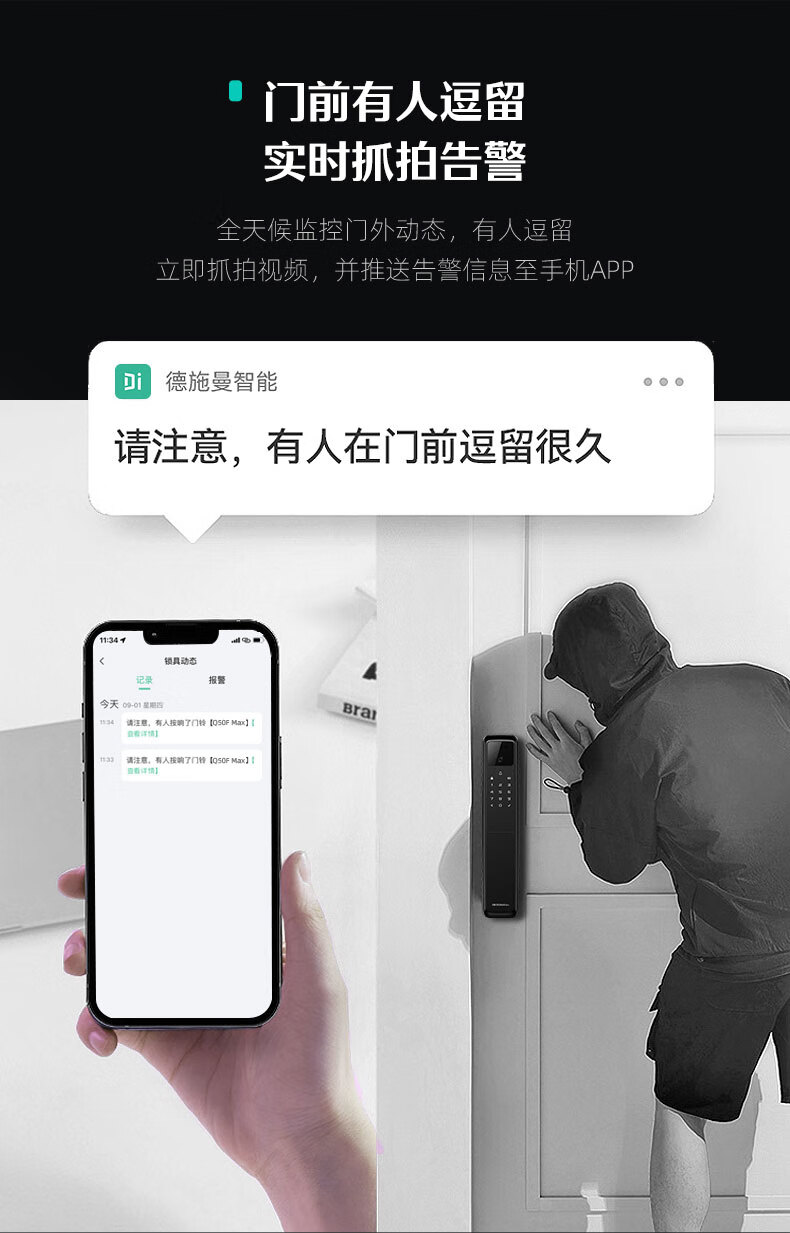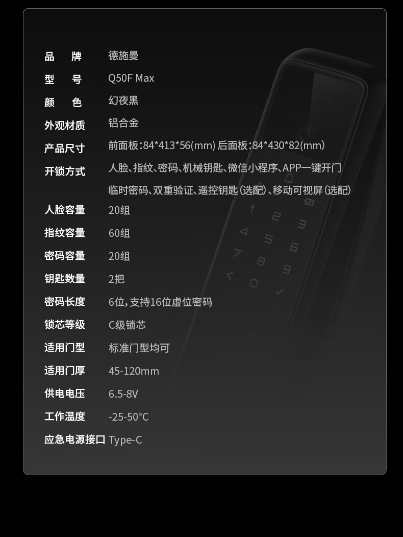 德施曼智能门锁指纹锁密码锁电子锁3D人脸识别猫眼大屏Q50FMax 幻夜黑(年度旗舰新款)