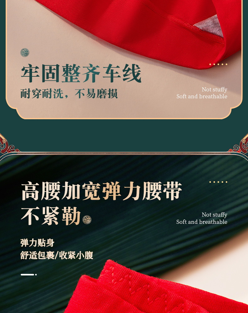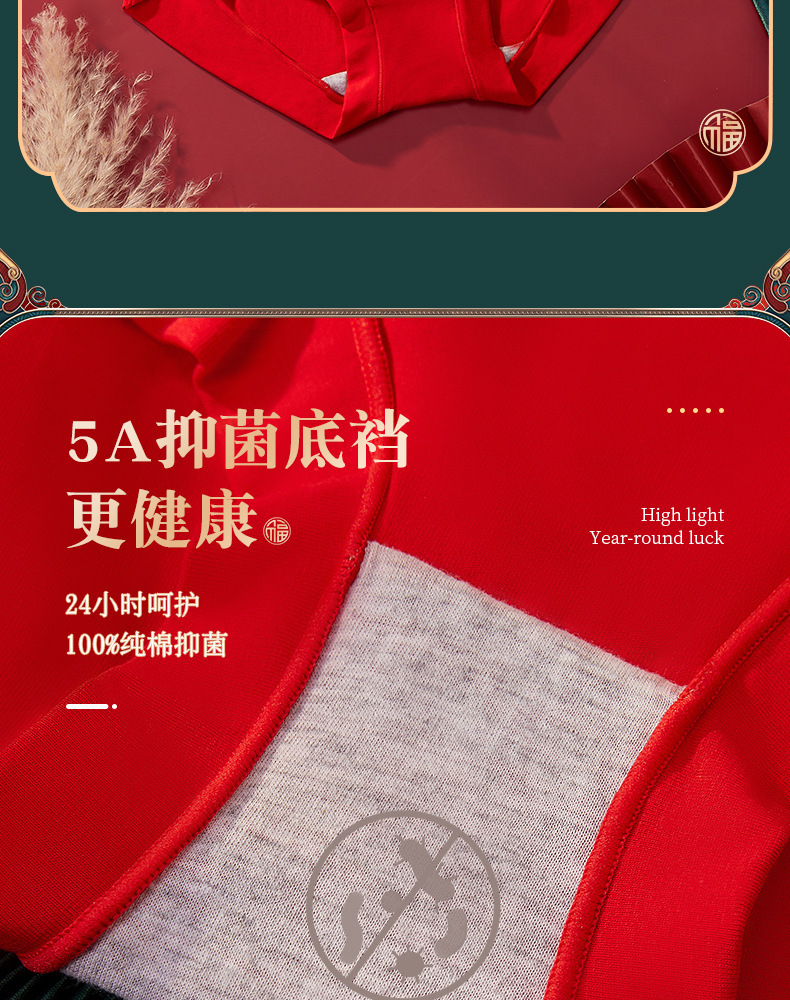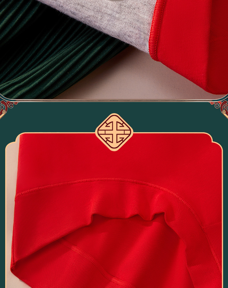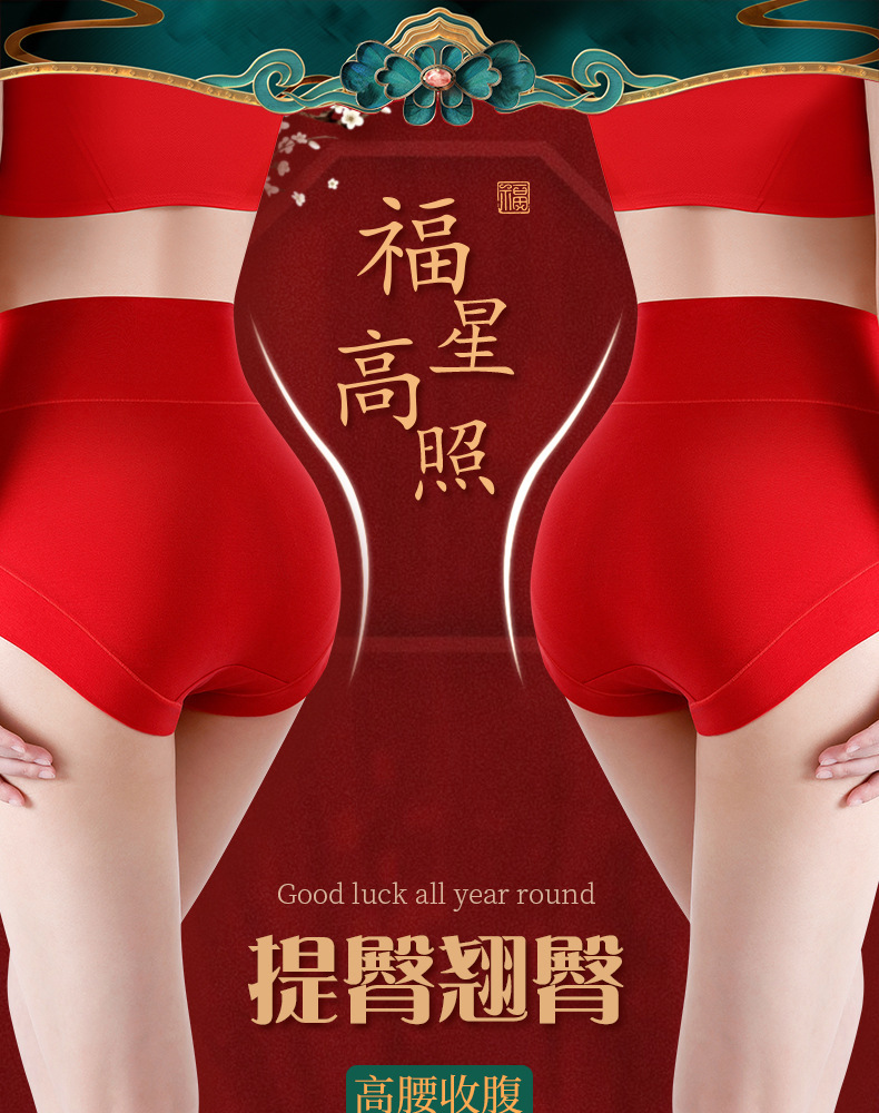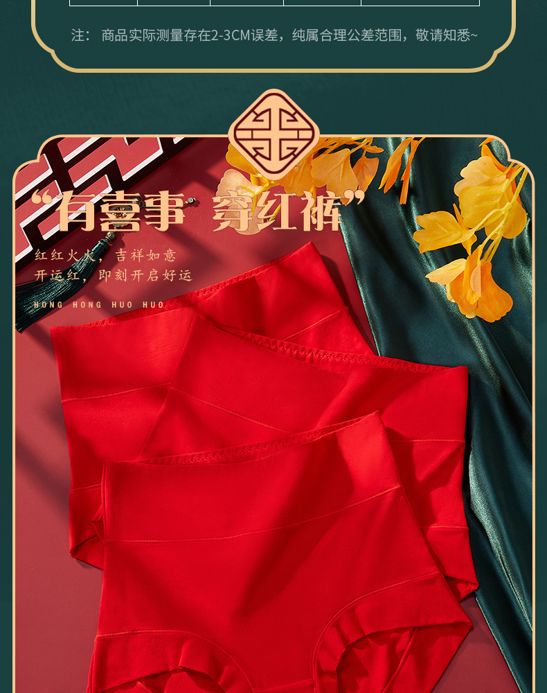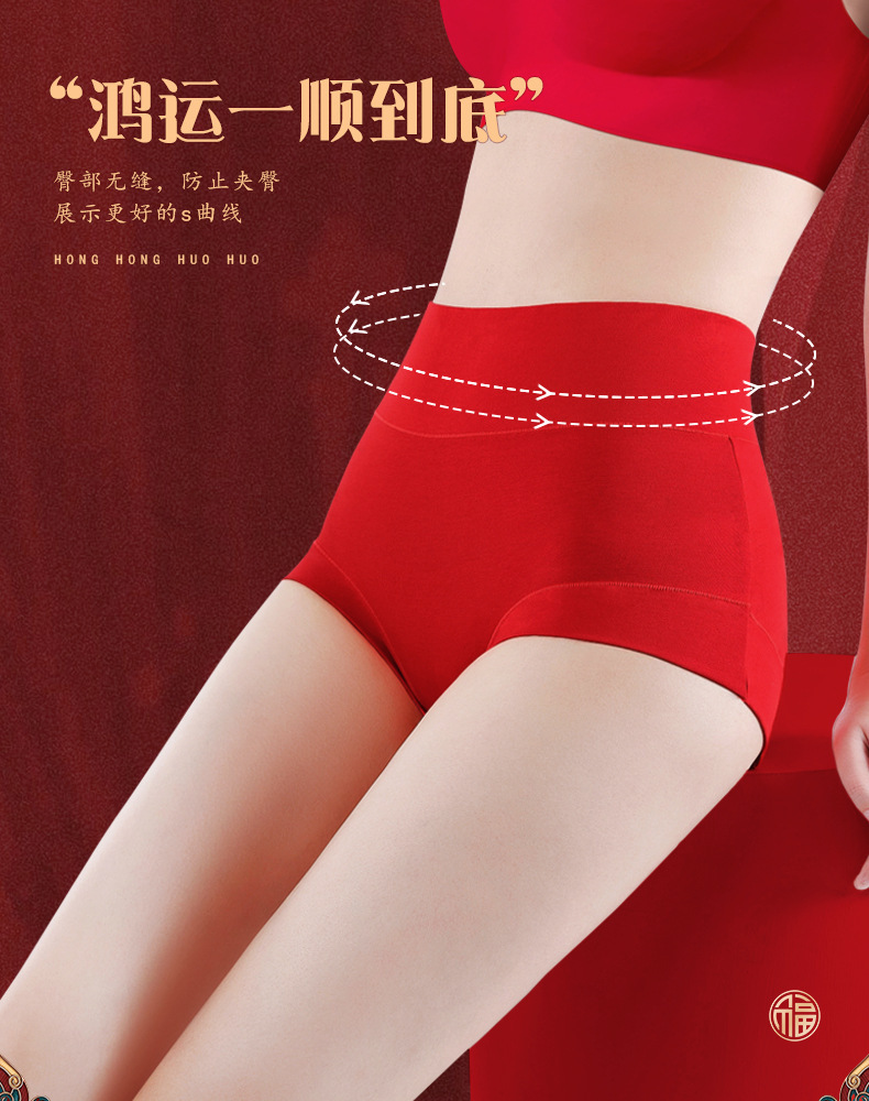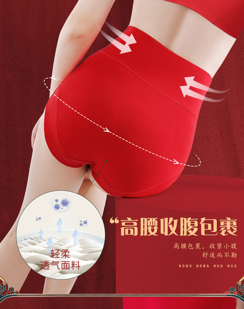 结婚喜庆本命年大红色内裤 纯棉抗菌女士高腰收腹内裤