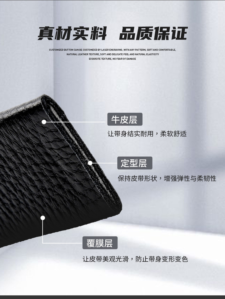 【实付满399送保温杯】【牛皮自动扣腰带(扣头可定制图案)】男士自动扣腰带皮带 头层牛皮裤带