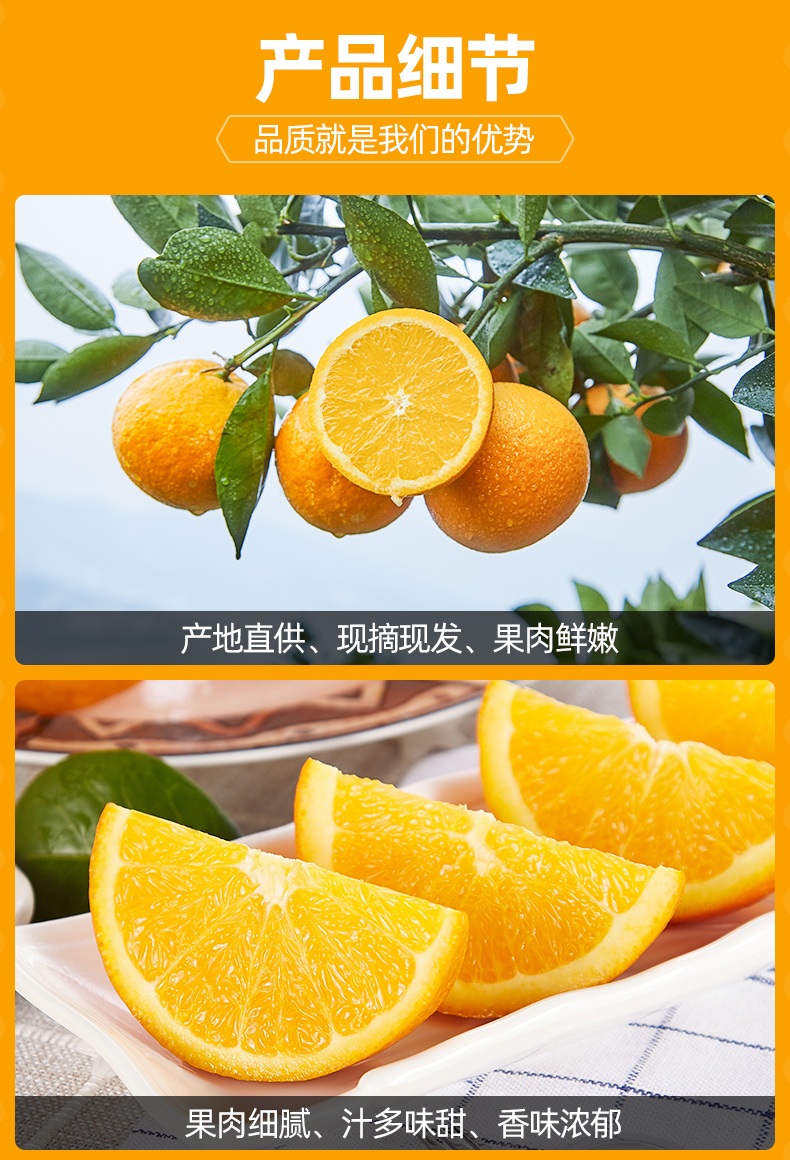 注意:橙子下树和运输中有时候难免会有小的戳伤、碰伤,并不是坏果。拍照发给客服会酌情处理,不是整个处理,介意慎拍