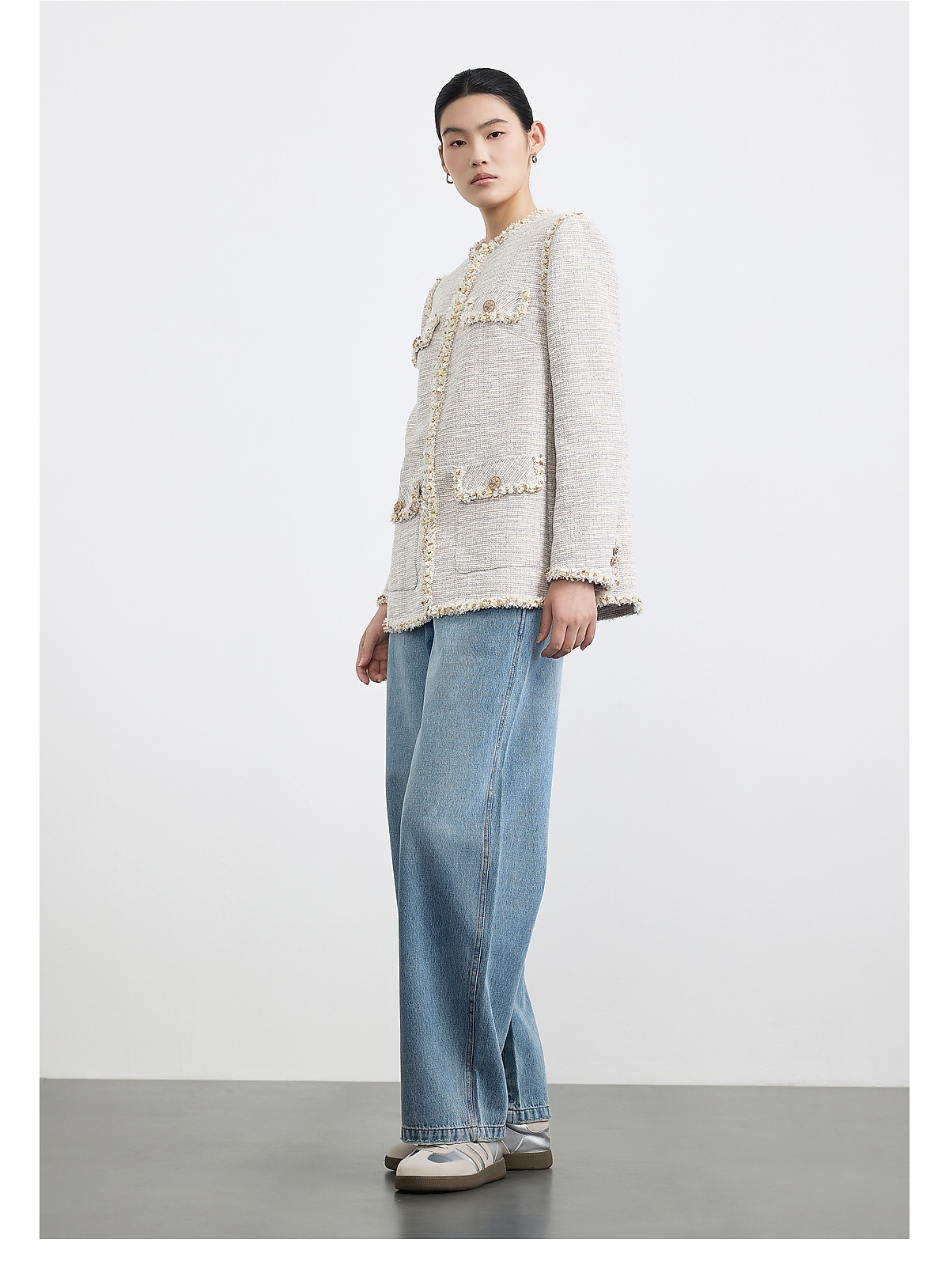 PURE TOUCH女装25秋冬新款粗花呢外套百搭法式小香风直筒短外套