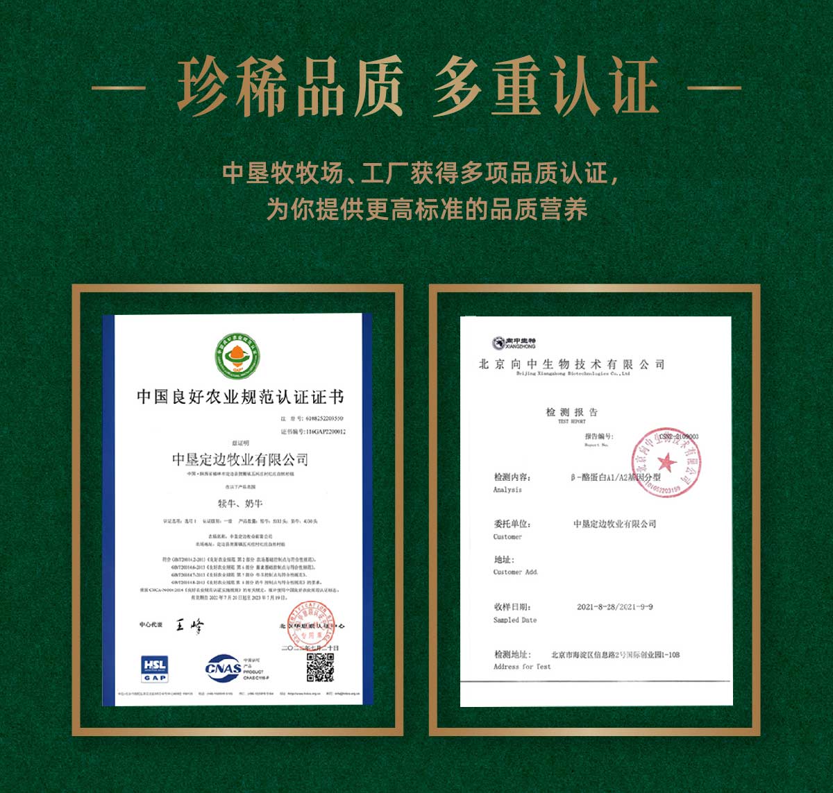 【中国农垦】中垦牧原生塞上A2β酪蛋白4.0纯牛奶200mL*12