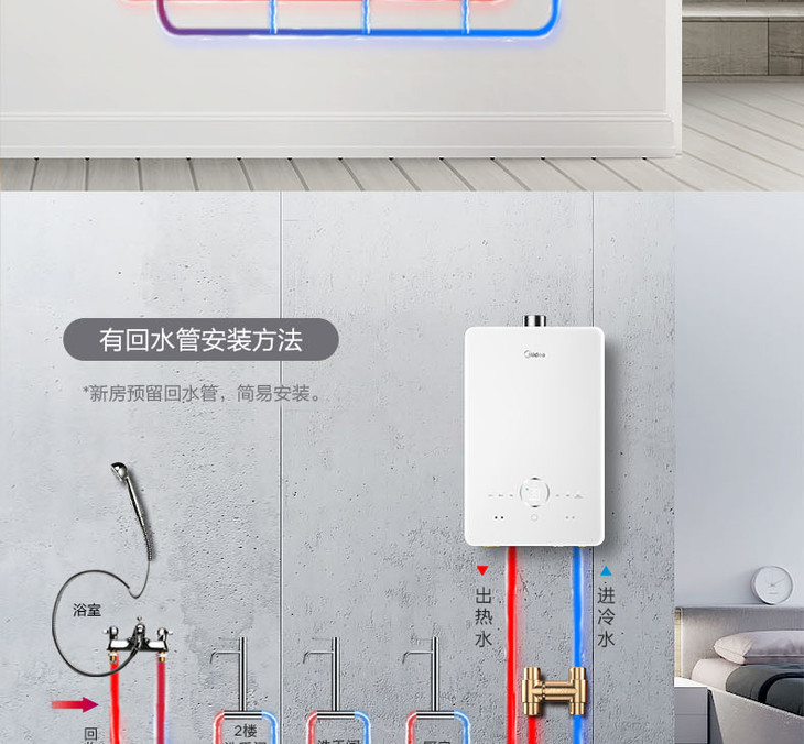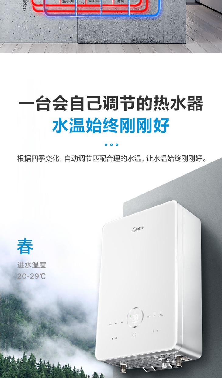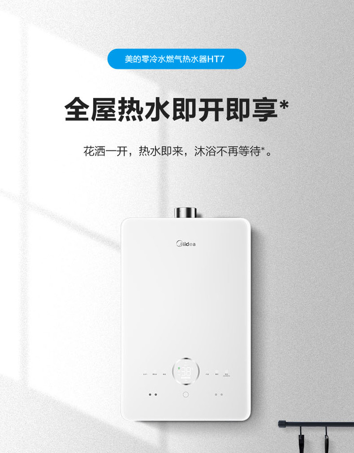美的(509447)燃气热水器 JSQ30-16HT7 16L 多种模式 智能屏 WIFI