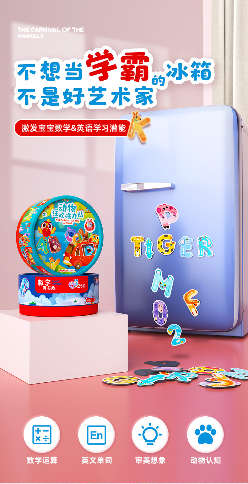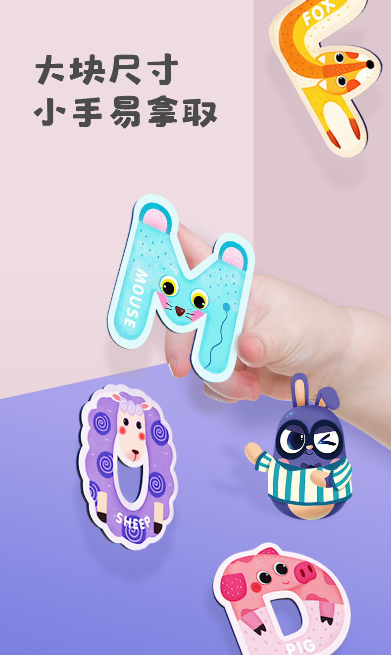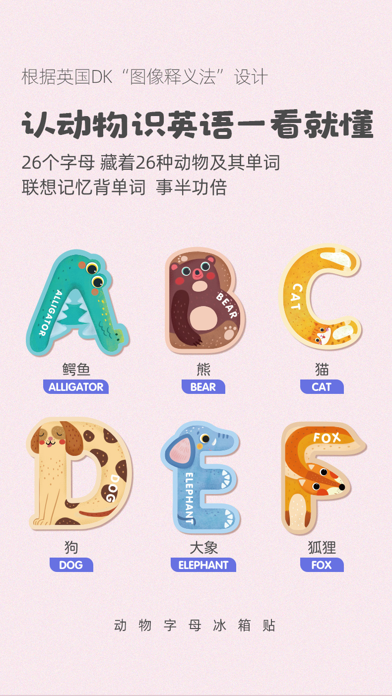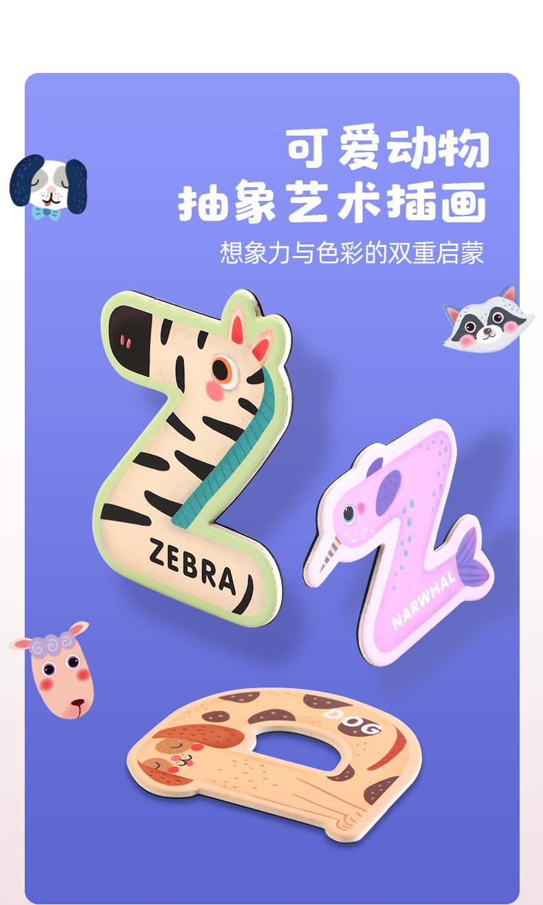 【激发孩子学习英语和数学潜能】GWIZ顽学儿童26英文字母数字动物冰箱贴磁力贴儿童英语早教玩具