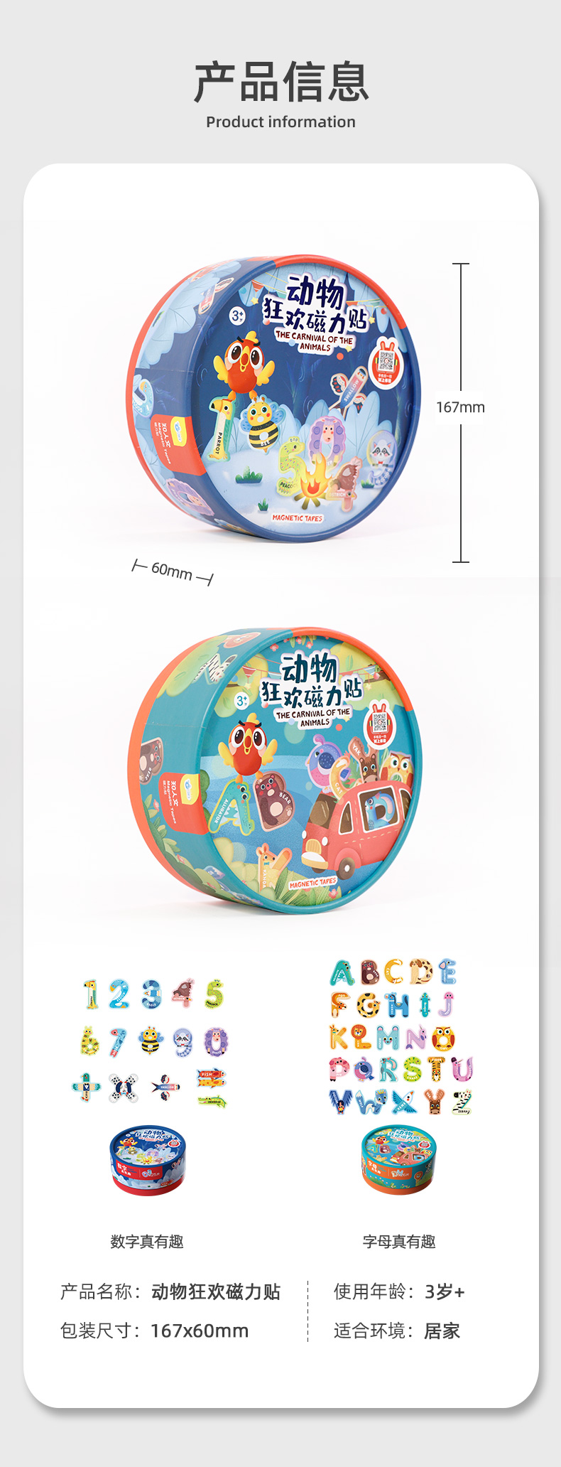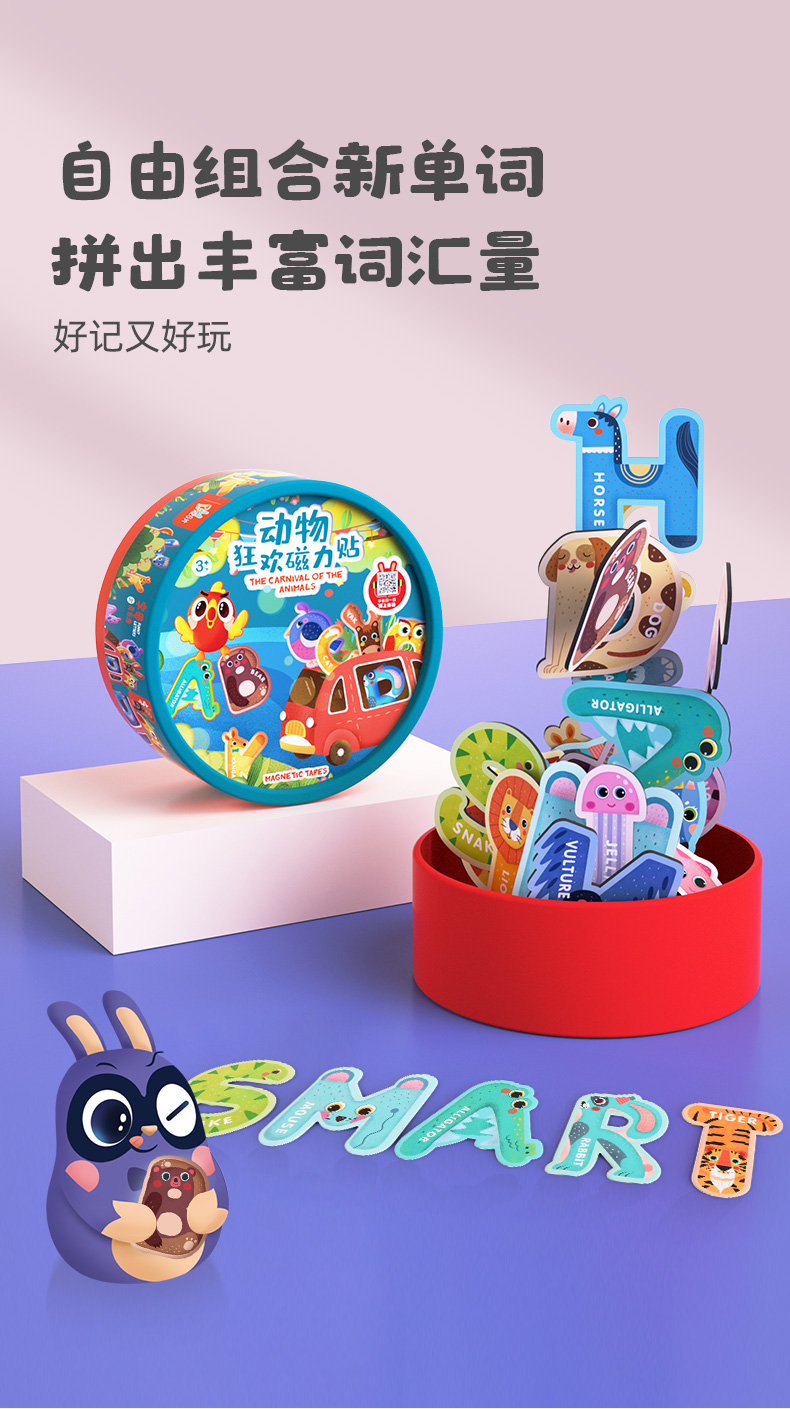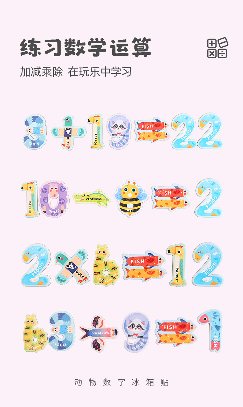 【激发孩子学习英语和数学潜能】GWIZ顽学儿童26英文字母数字动物冰箱贴磁力贴儿童英语早教玩具