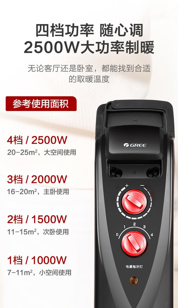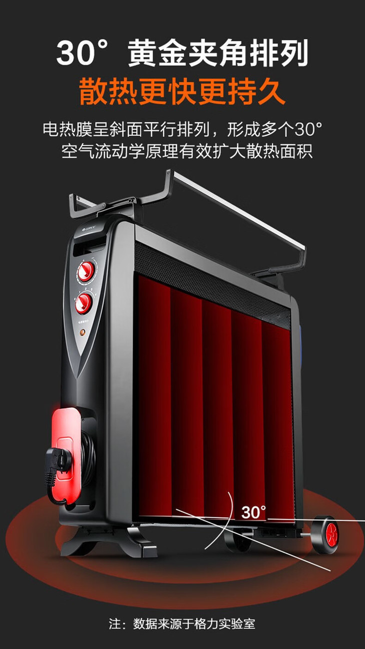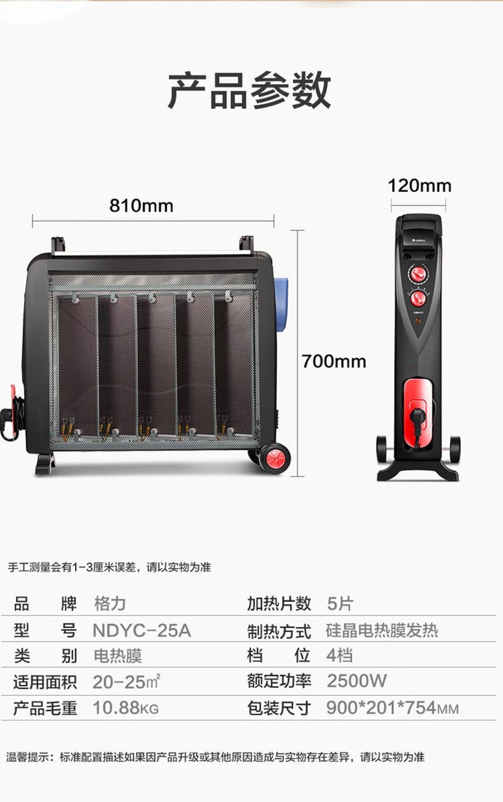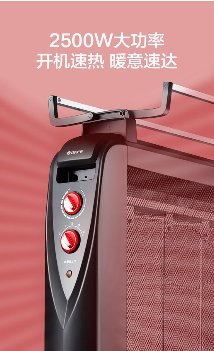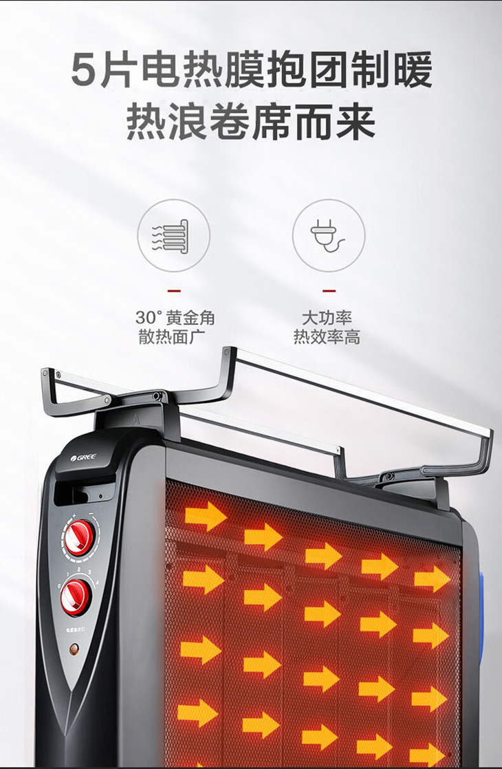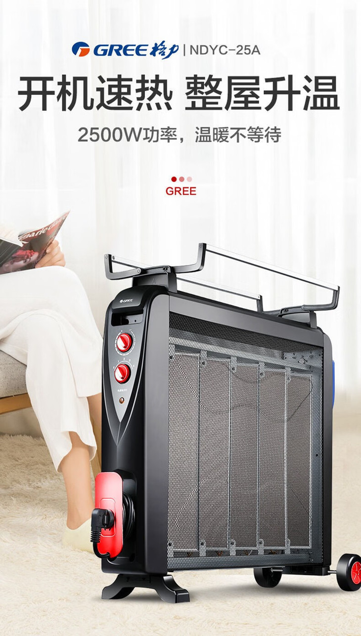 格力(505092)(GREE) 电暖器取暖器电暖气 家用卧室速热节能省电暖风机电热膜烤火炉大功率电暖气片 2500W NDYC-25A