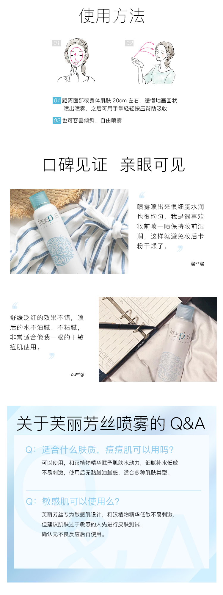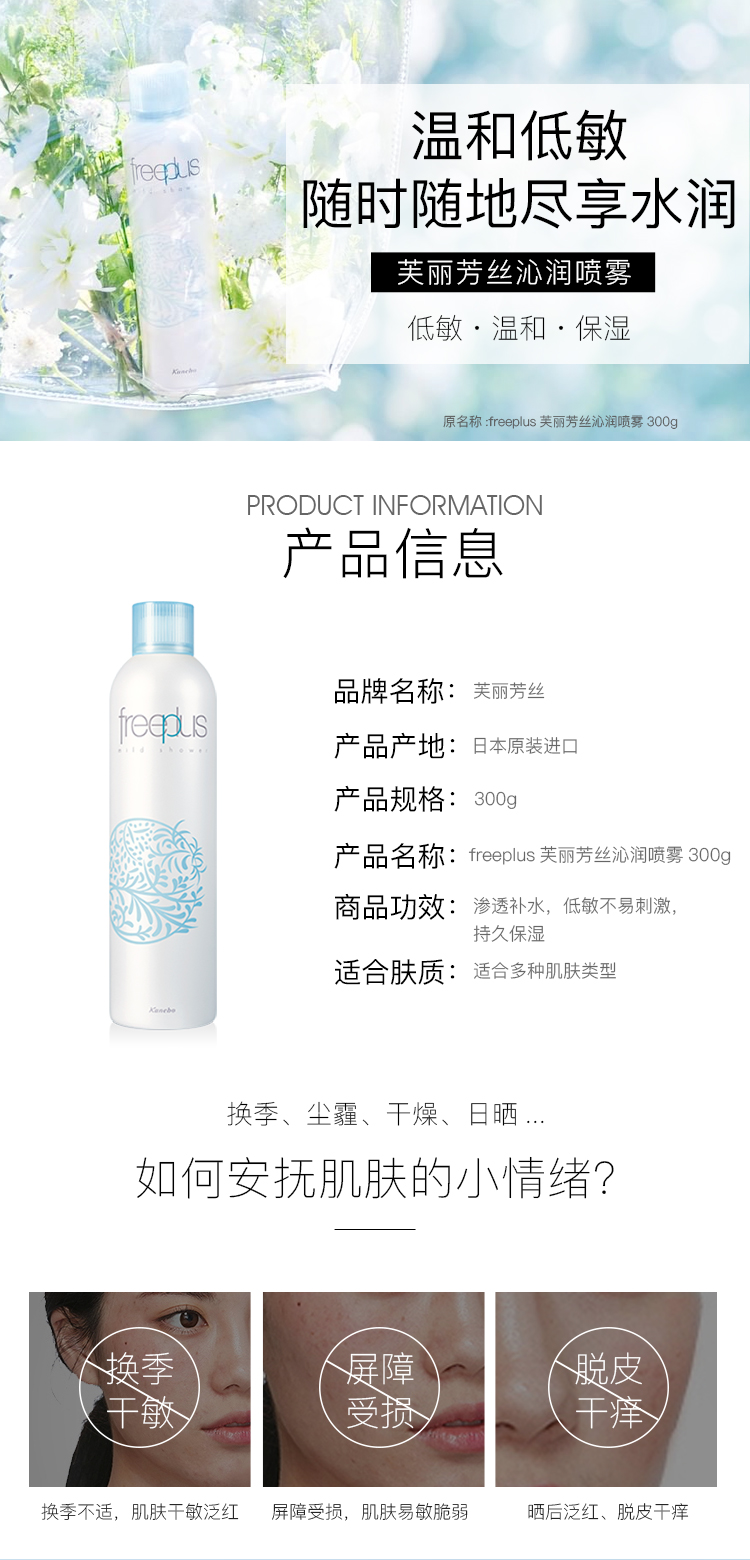 Freeplus芙丽芳丝沁润喷雾300ml氨基酸大喷温和舒缓 补水保湿喷雾JPY带授权招加盟代理